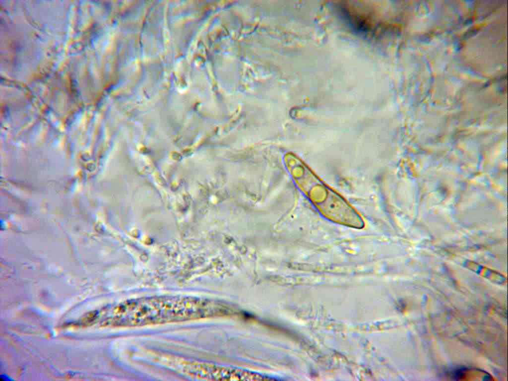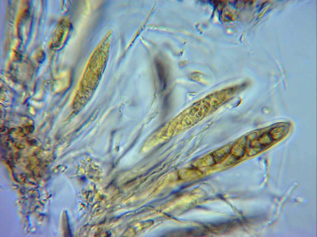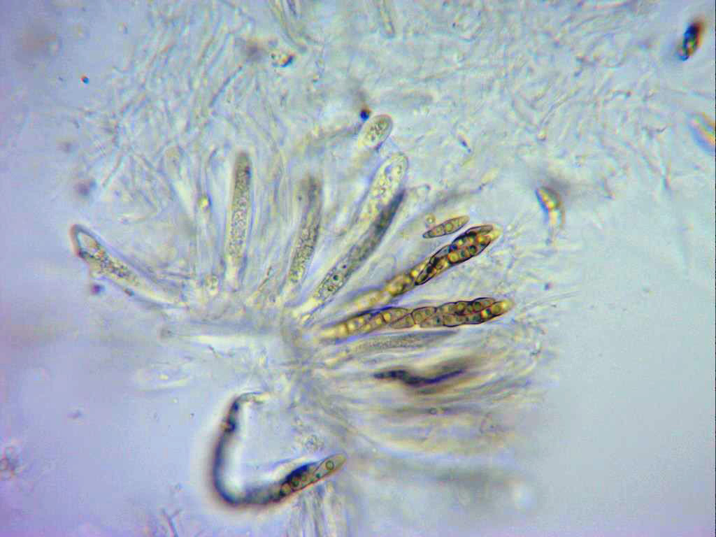 Herpotrichia herpotrichoides, esta ya con esporas de un tamaño mayor (25 a 29 µm de largo).
