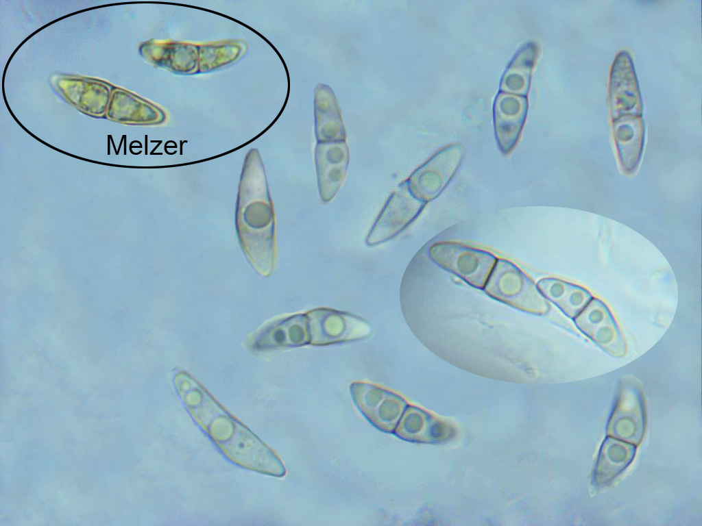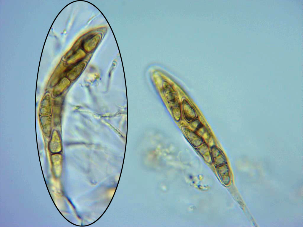 Ascosporas en agua destilada, con un septo, terminadas de forma cónica con el extremo redondeado, con un estrechamiento en la zona del septo, y mayoritariamente con dos vacuolas en cada lado. Las medidas de estas de 18,3;24,2 X 5,1;6,5 µm.
