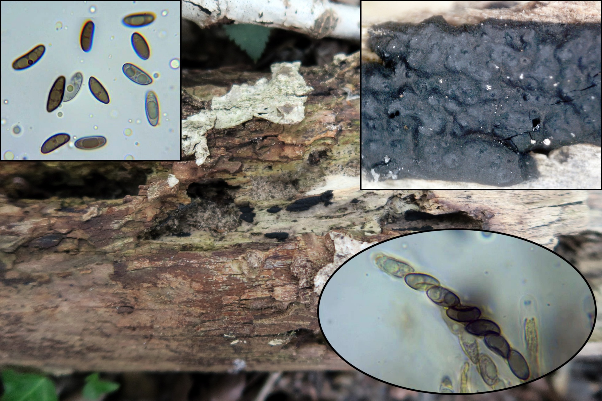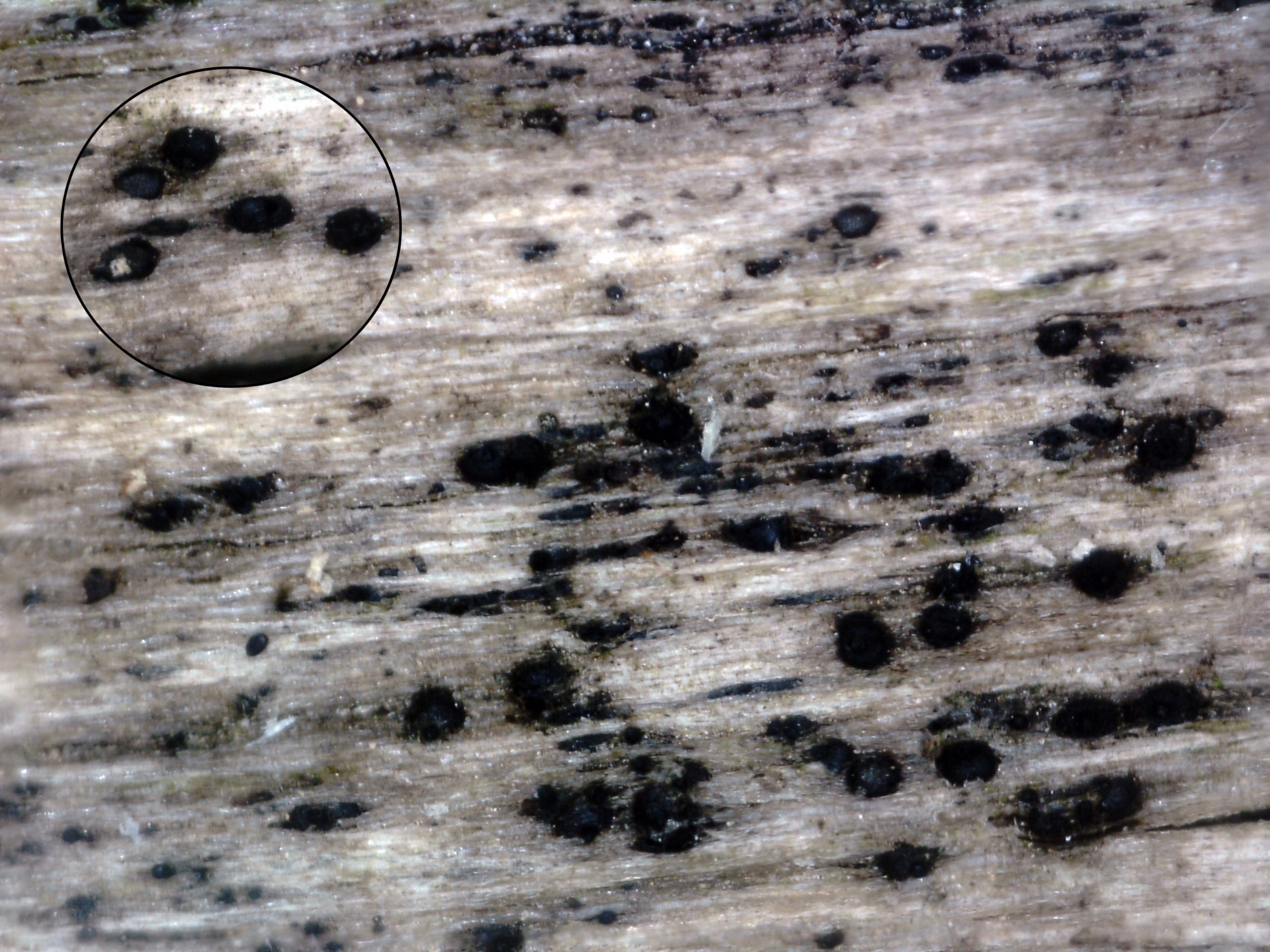 Muy parecidas macroscópicamente con especies de los géneros Melanomma y Capronia, aunque en este caso ya hay claras diferencias en la microscopía.