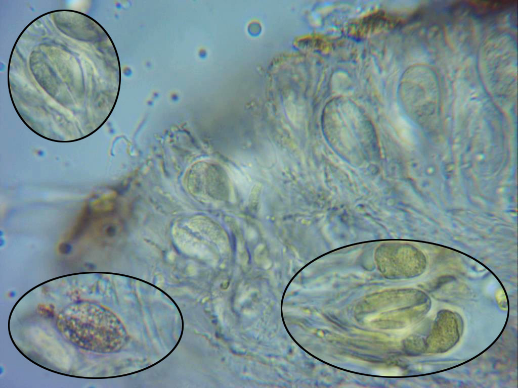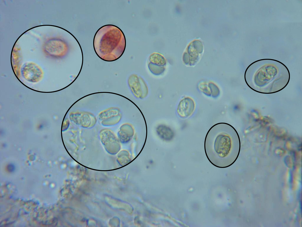 Las pocas esporas que pude encontrar, en mis mediciones de 9,3;11,1 X 6,1;6,9 micras.