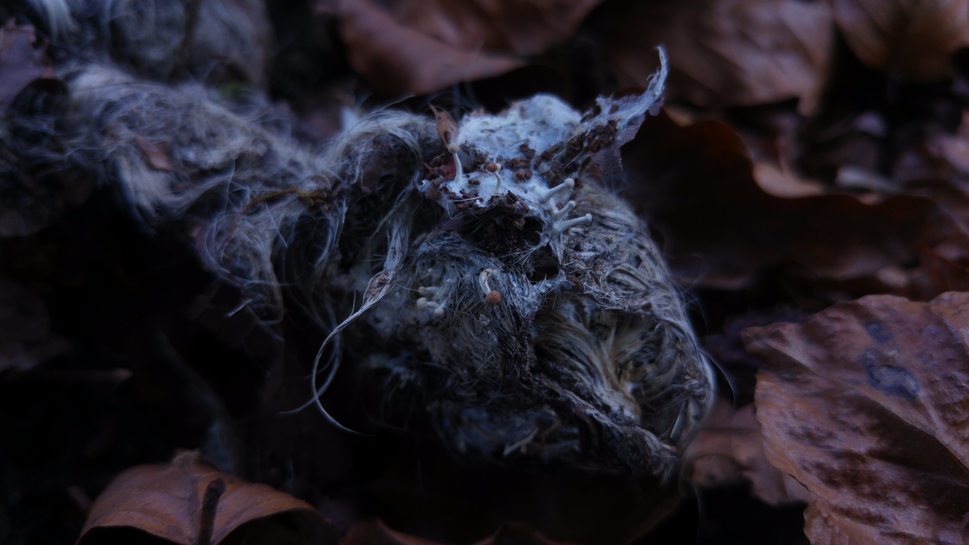 Ahora vamos con la O. corvina, que encontré en un hayedo esta semana pasada. Sobre restos de pelo, según la bibliografía aparece sobre restos de pelo o plumas.
