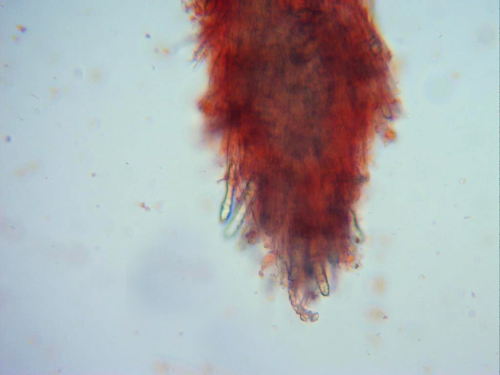 Aguijón a 400 aumentos, donde ya destacan sus cistidios.