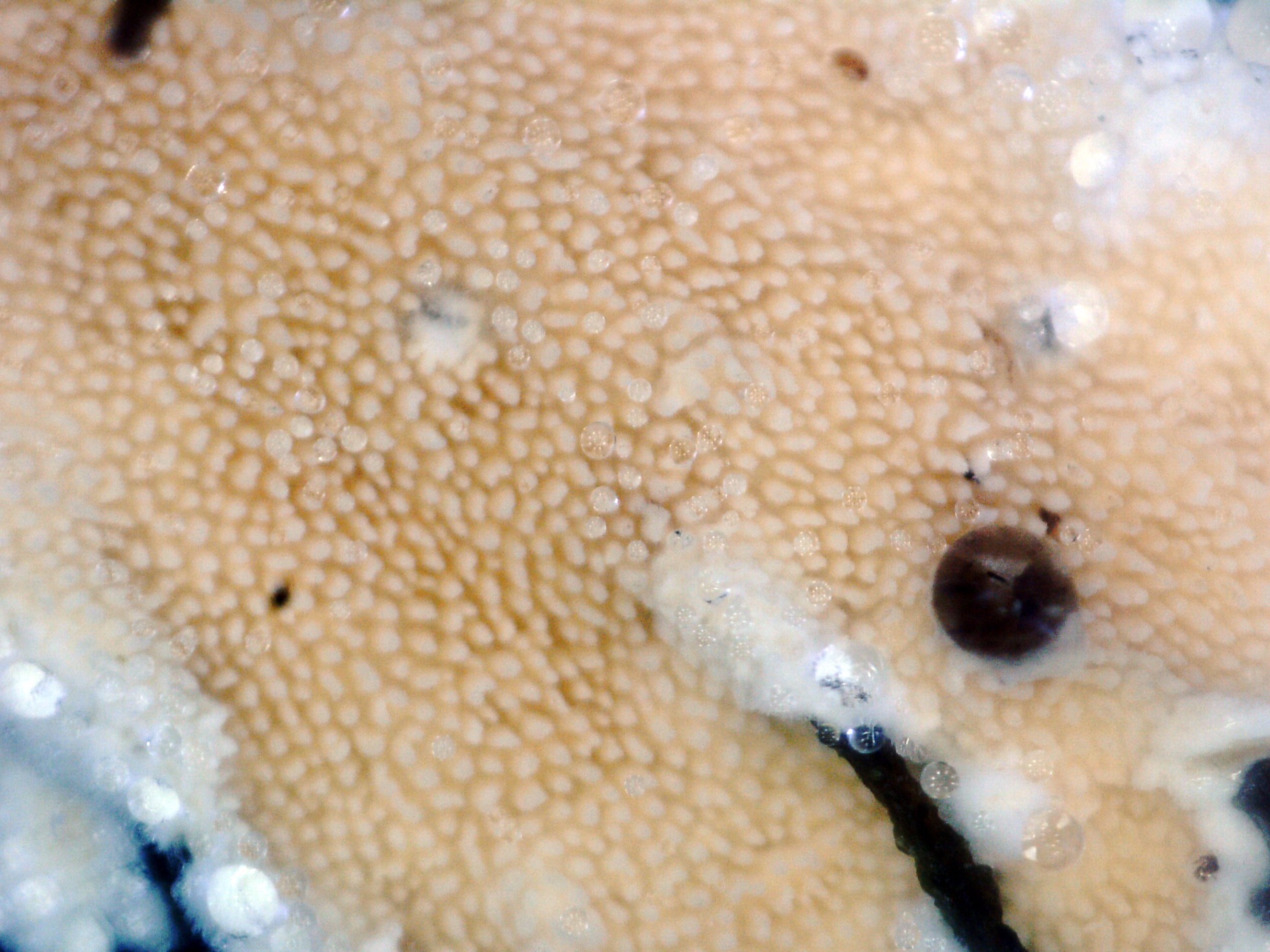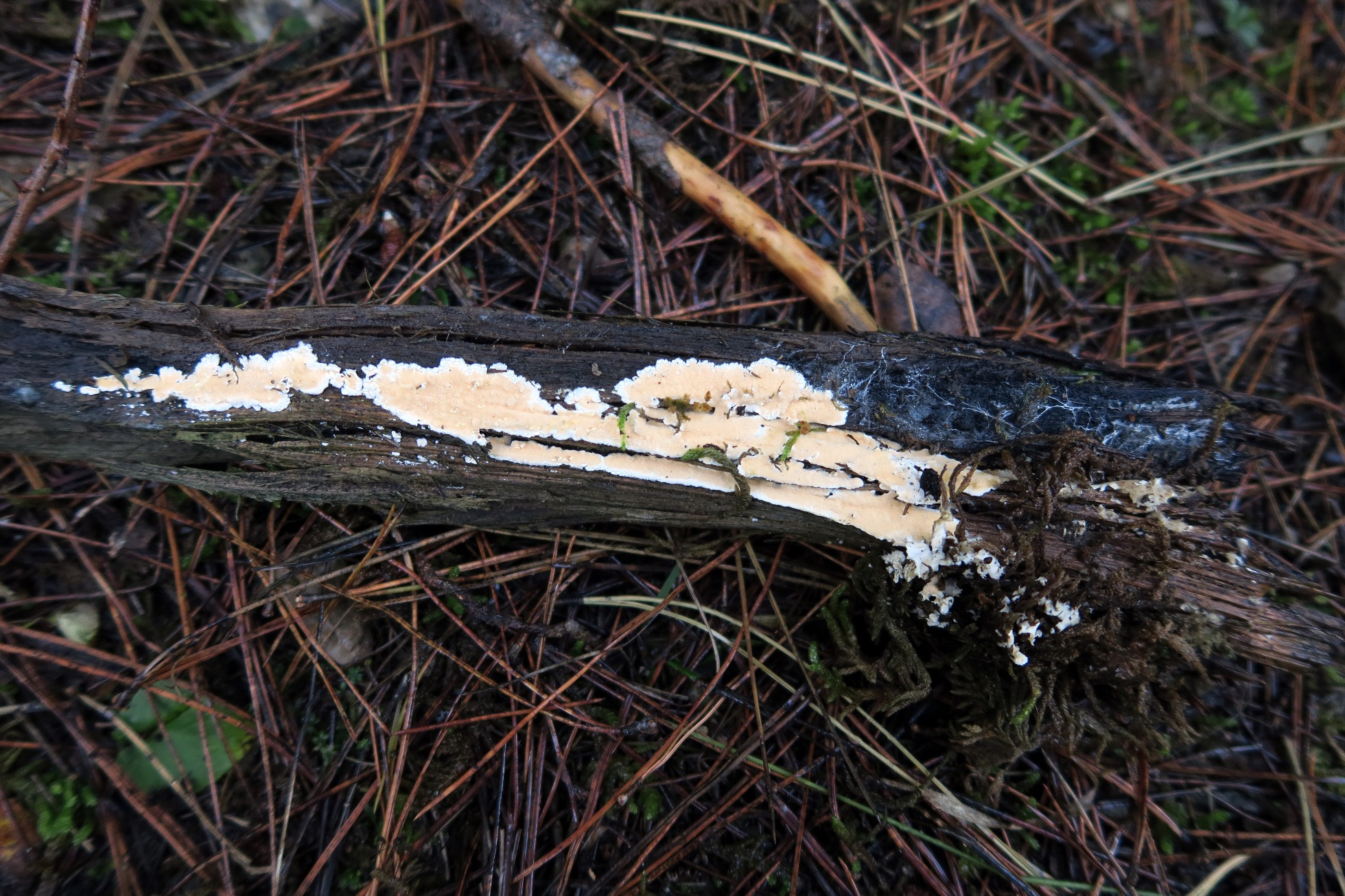 Si de esta me llevé una muestra es porqué no pensé que se tratara de Steccherinum ochraceum, esta especie ya había estudiado anteriormente y siempre me la había encontrado sobre madera de quercus o planifolio, según los autores consultados su presencia sobre madera de coníferas se considera rara.