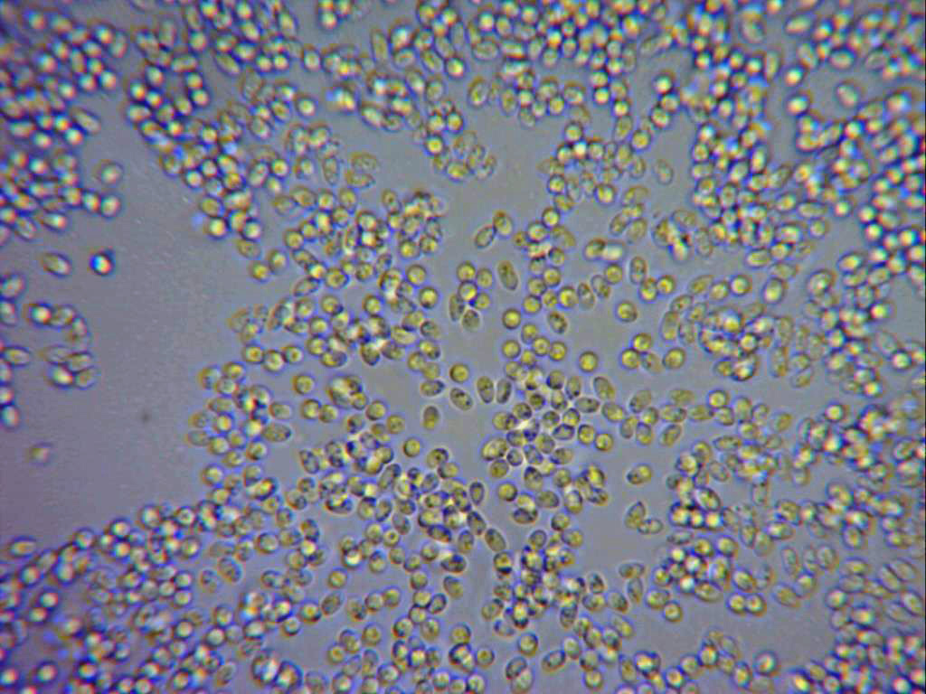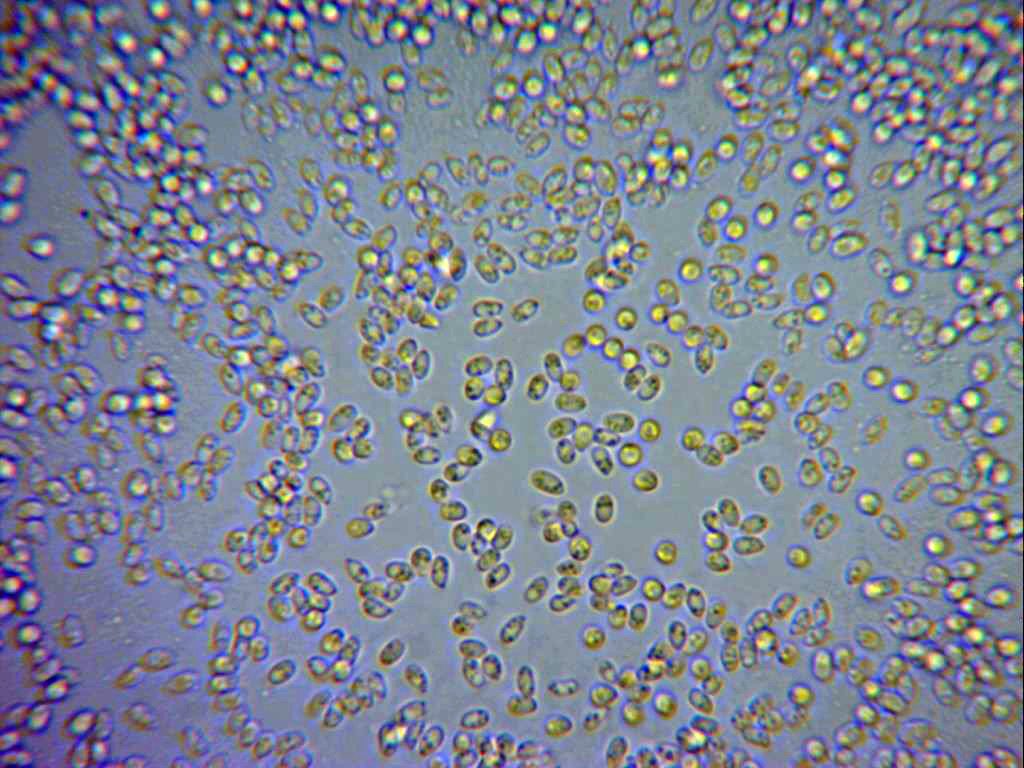 Esporas muy pequeñas, elipsoides, hialinas, de pared fina y con ligeras granulaciones muy tenues en su interior. En mis mediciones de 2,9;3,7 X 1,8;2,4 micras. acordes con la bibliografía consultada.
