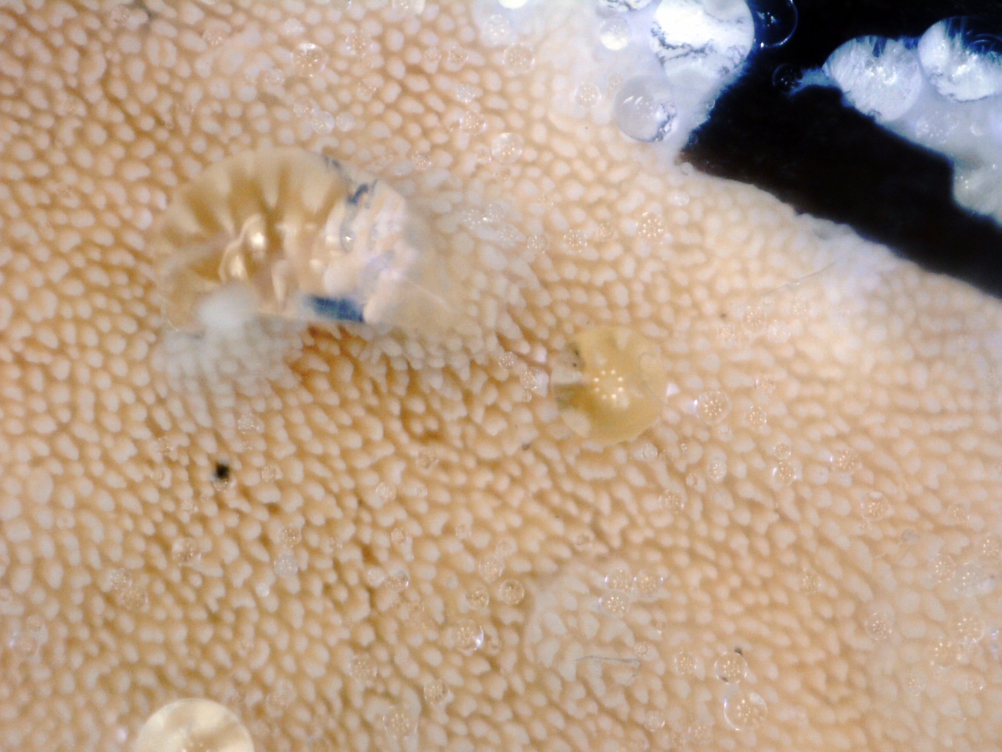 Dos imágenes de las esporas, la esporada en masa de color blanquecino.