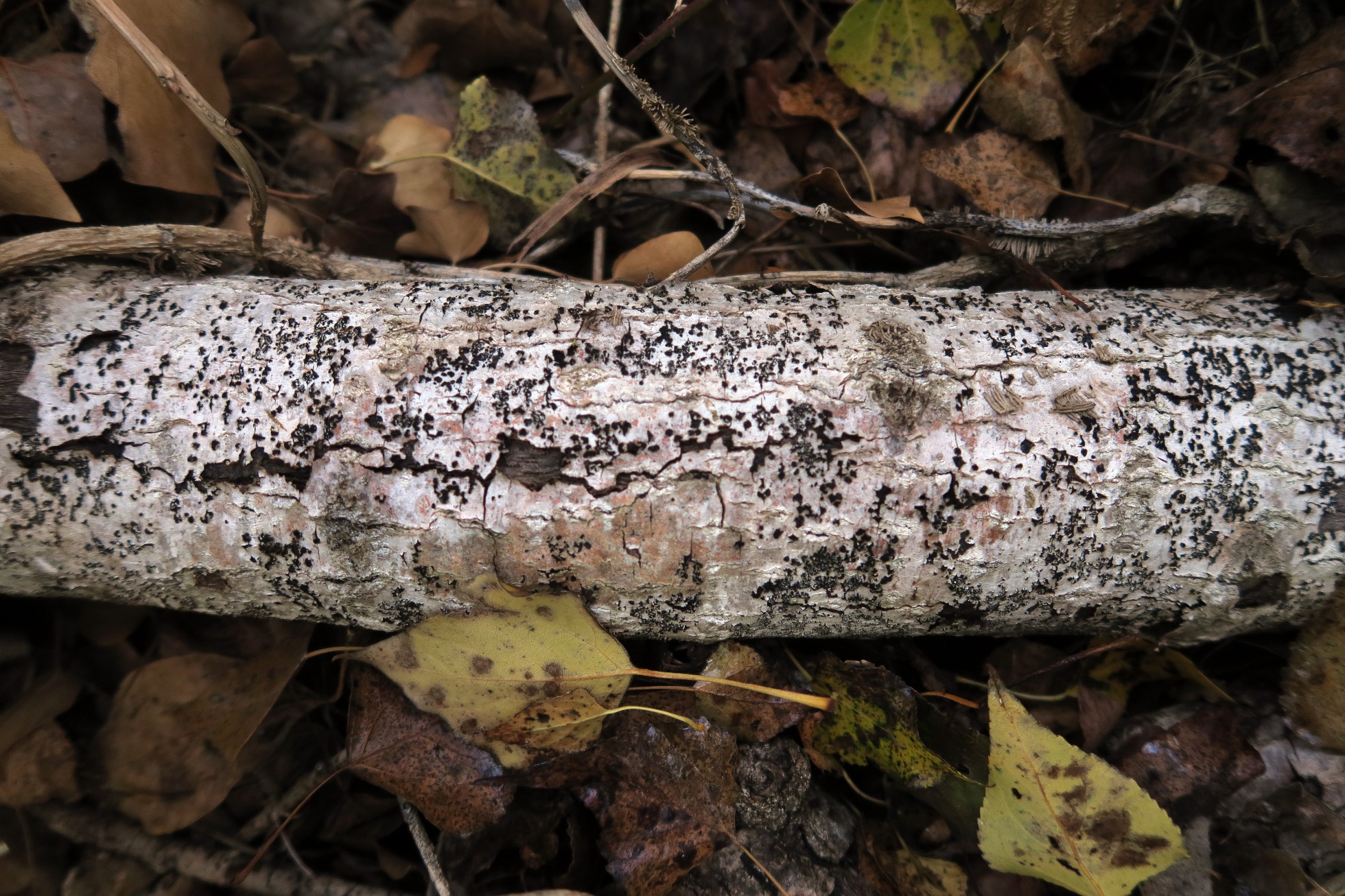 Unos diminutos apotecios sobre un pequeño tronco de planifolio, probablemente de Alamo blanco, en la zona abundan tanto el Populus alba como el Populus nigra.