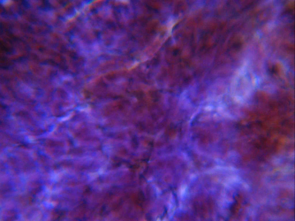 Una de las características de la Dialonectria episphaeria es el comportamiento de la pared al KOH, en la imágen el mismo en solución de KOH, adquiriendo un color violeta granate muy llamativo.