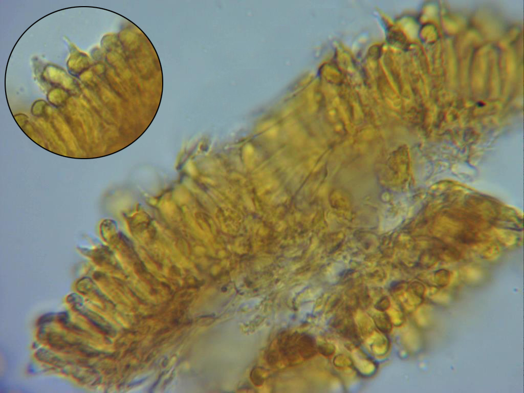 Detalle de la trama laminar y los basidios,