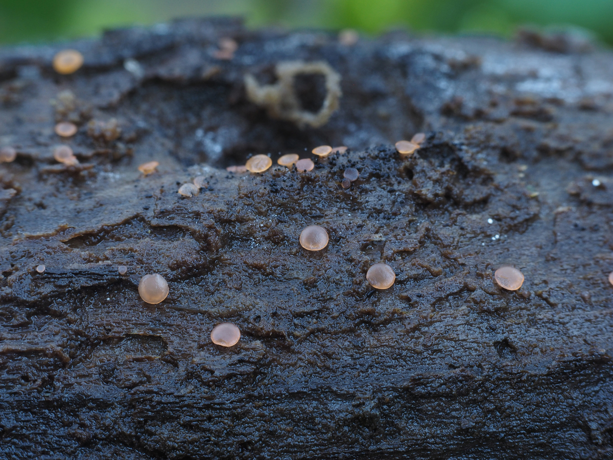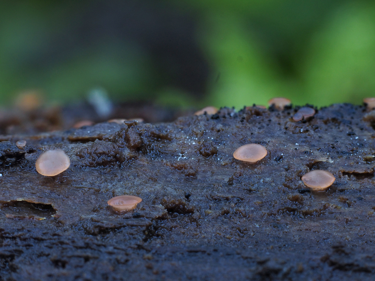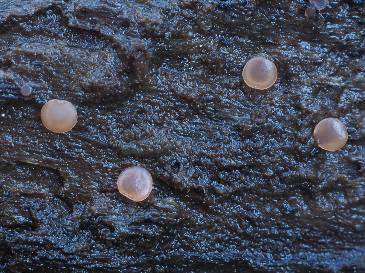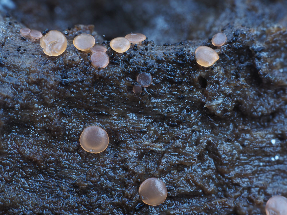 Apotecios de 1mm de diámetro, sésiles o con un pequeño pseudopie. De color amarillento-rosáceo. Crecían en una rama de Alnus de 31mm de diámetro clavada en el fango, a unos 8cm de este, en la presa de Lekubaso (Bizkaia).