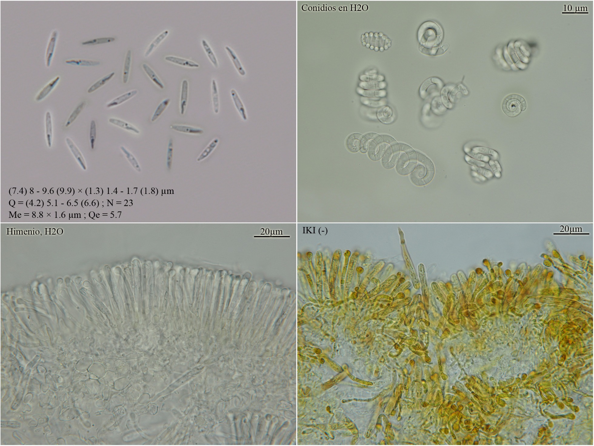 Es preciosa esta especie y me ha dejado boquiabierto la importancia de la forma conidial en su identificación, y no menos las espirales que ya de por sí deberían poner nombre a la especie, qué cosa más bonita!