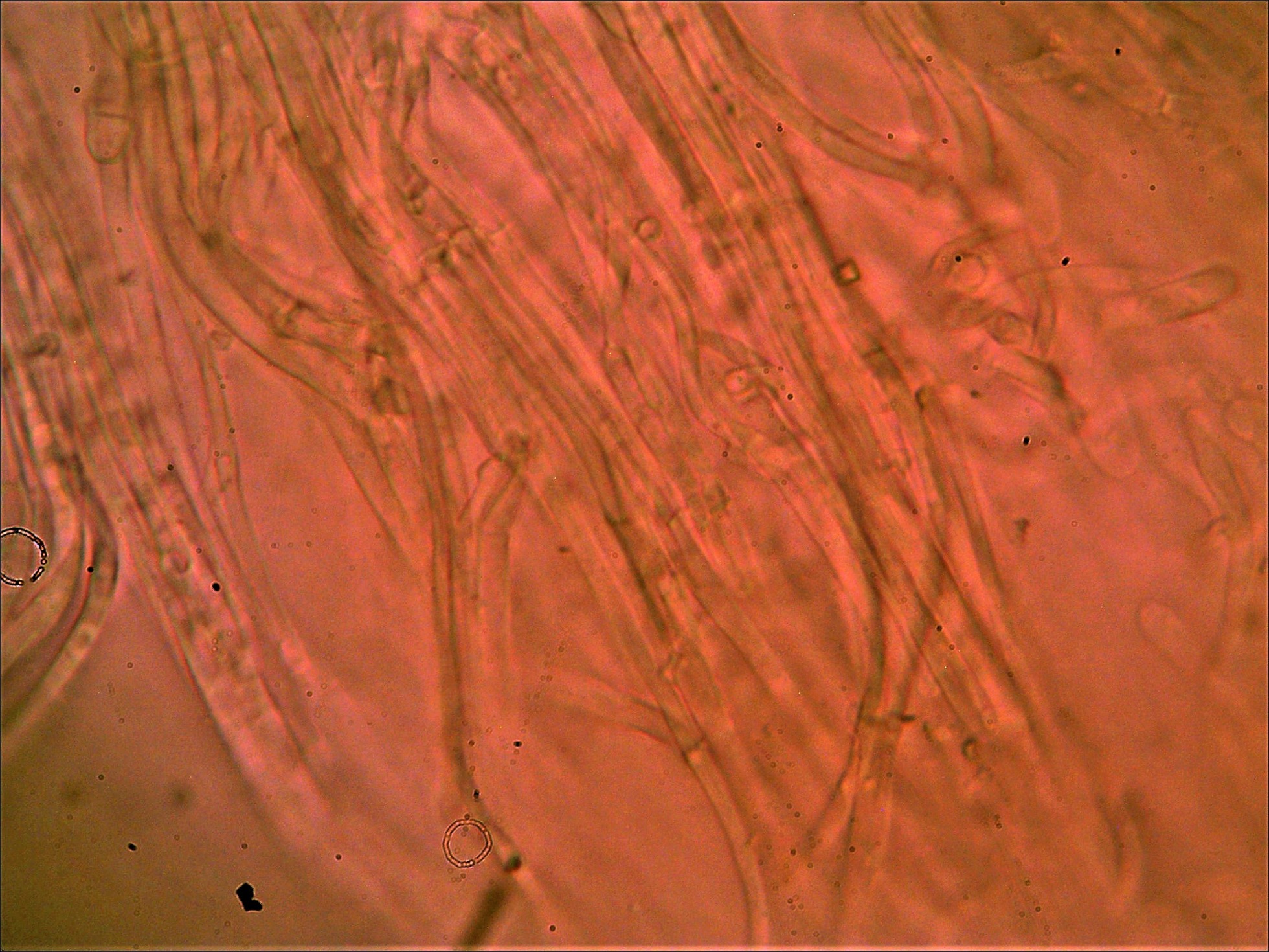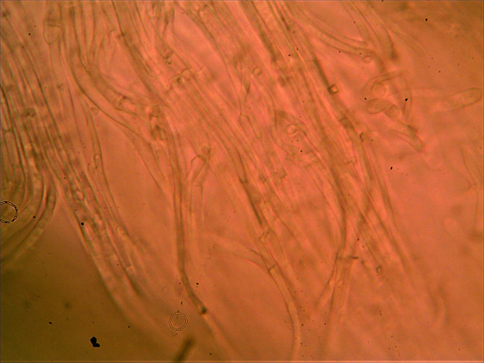 Y por último imágenes de la Caulocutis, compuesta por hifas fibuladas y septadas.