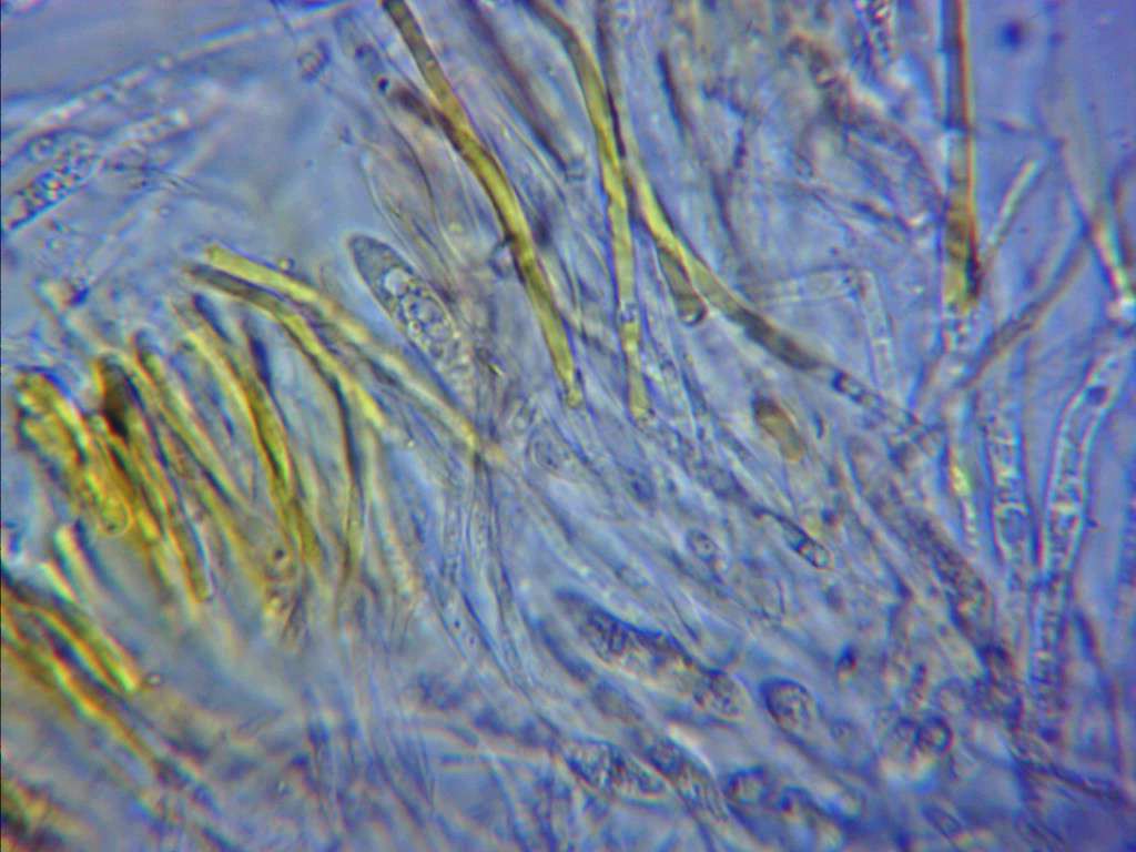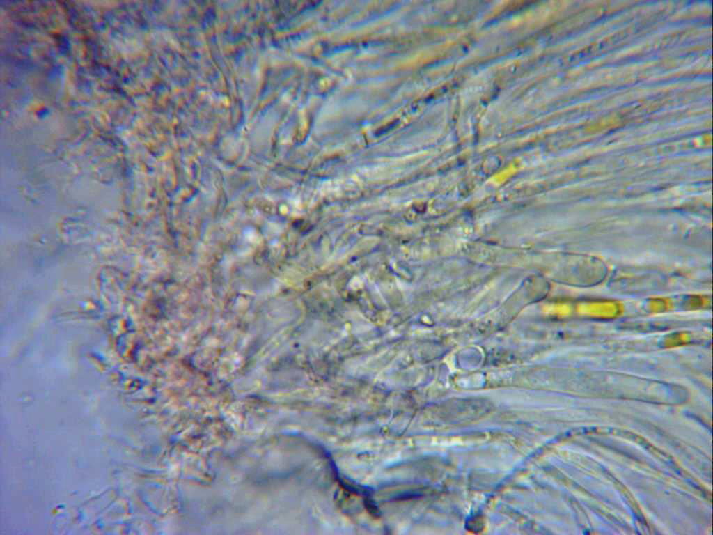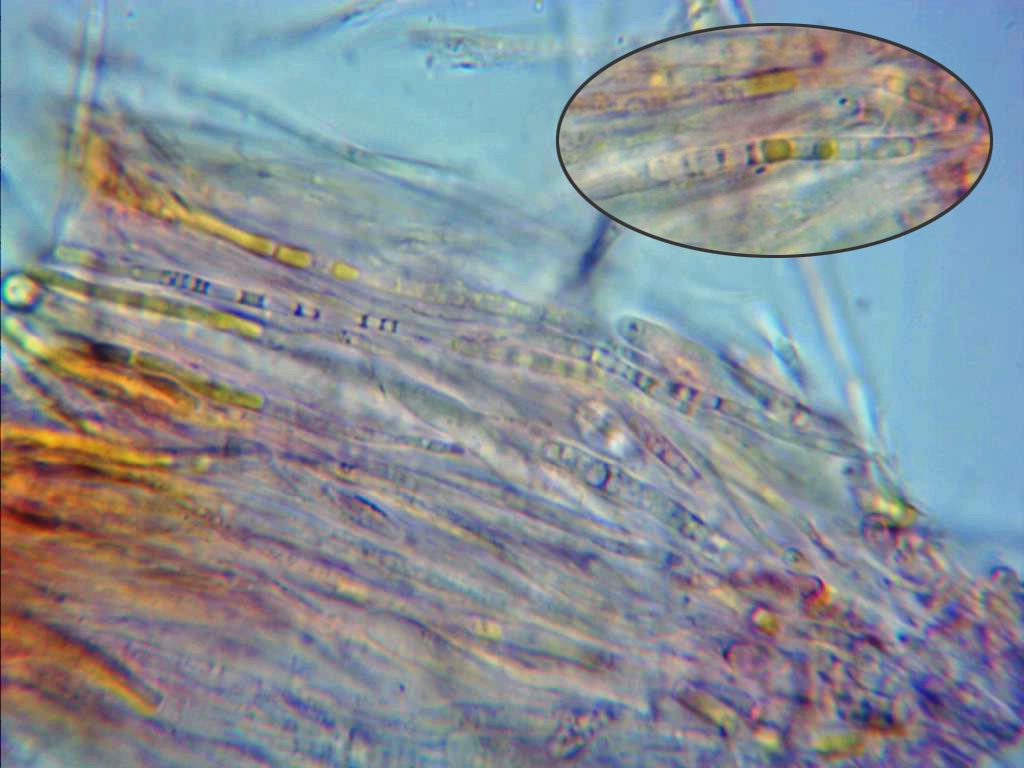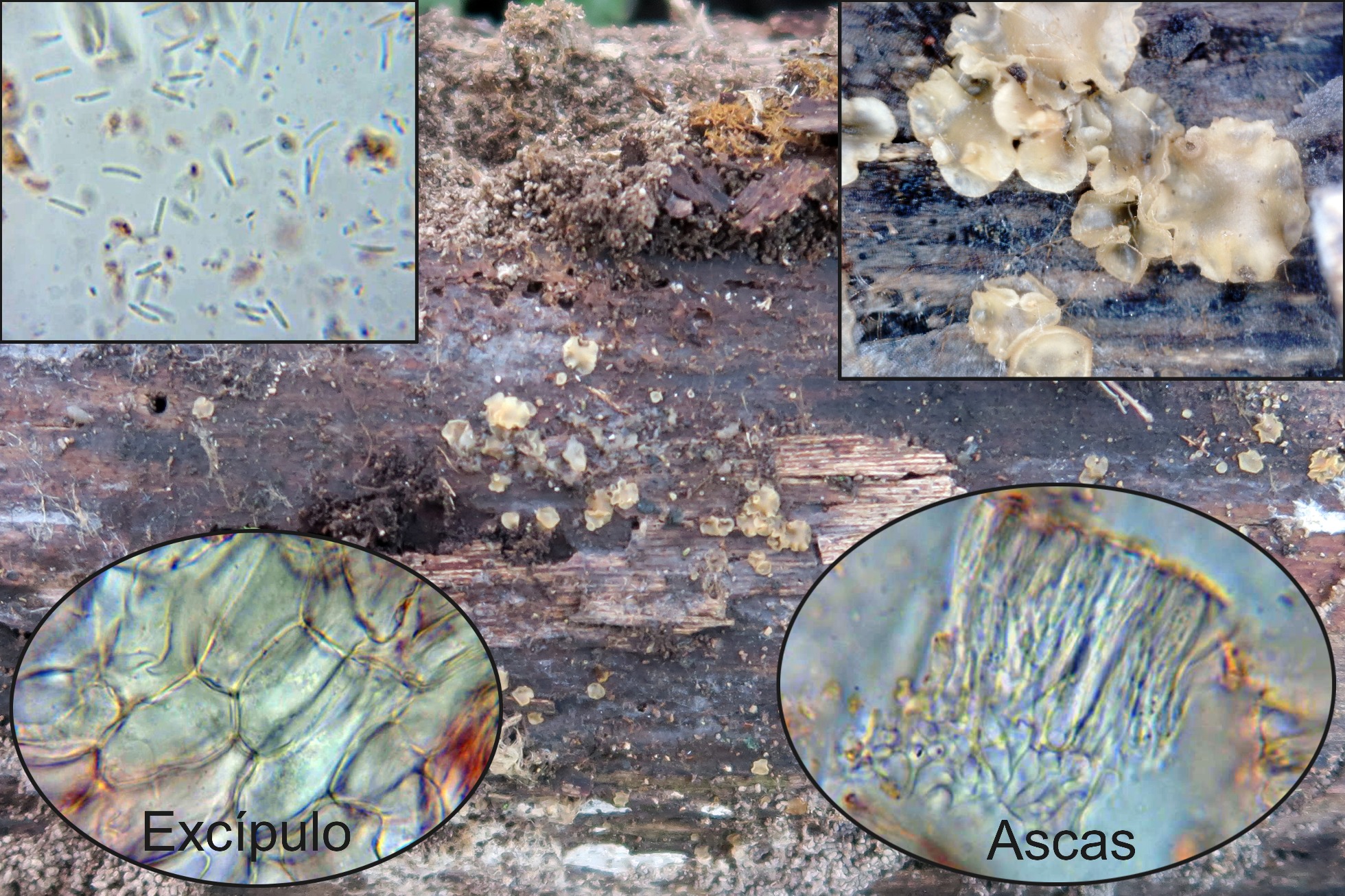 Otra vieja conocida que reconocí al instante, con hifas alargadas en el excípulo y ascosporas cilíndricas, rectas y alargadas.