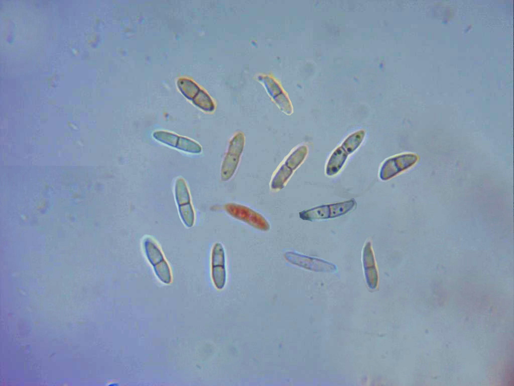 Esporas subfusiformes, lisas, hialinas, con tenues gutulaciones en su interior , con un septo y generalmente ligeramente estreñidas en su parte central.