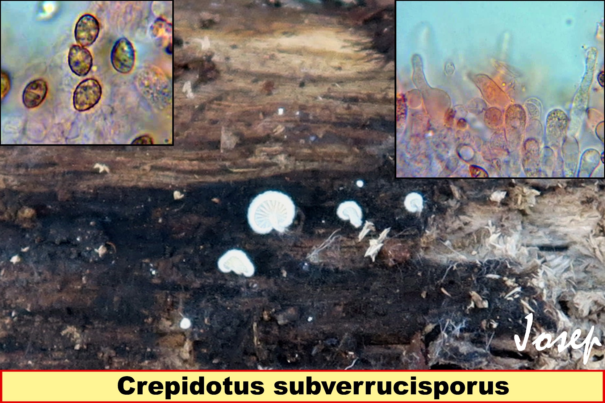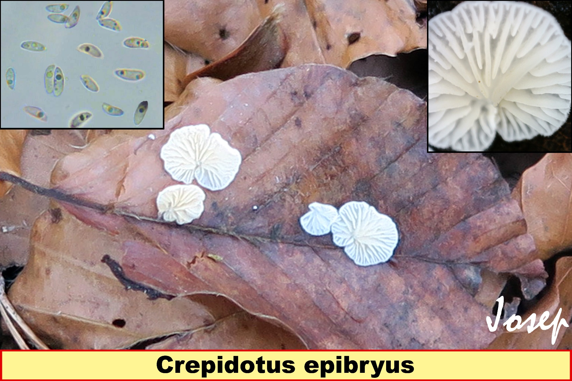 Josep, aquí cesatii junto con variabilis son los Crepidotus más comunes y difíciles de separar de visu.De los que nos muestras tengo el epibryus.