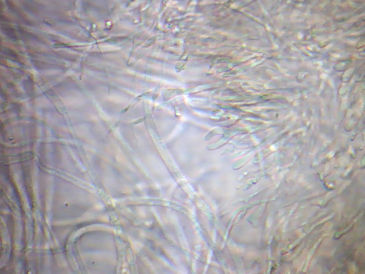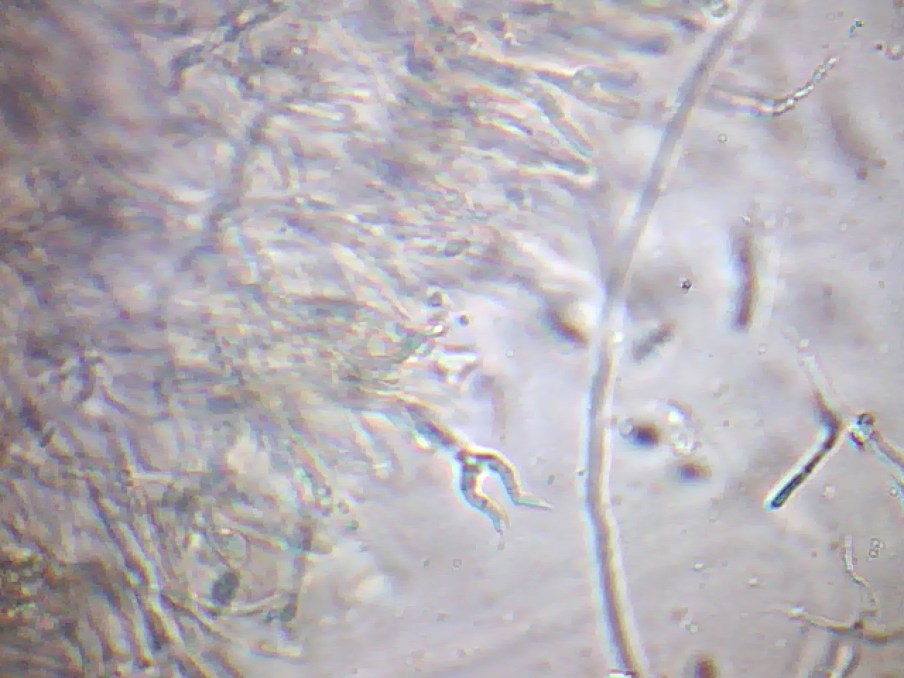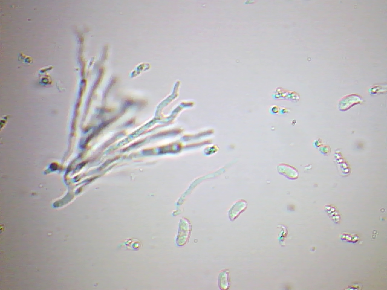 Varias imágenes con sus característicos basidios estrechos y bifurcados con forma de cuernecillos, creo que hay viene su nombre.