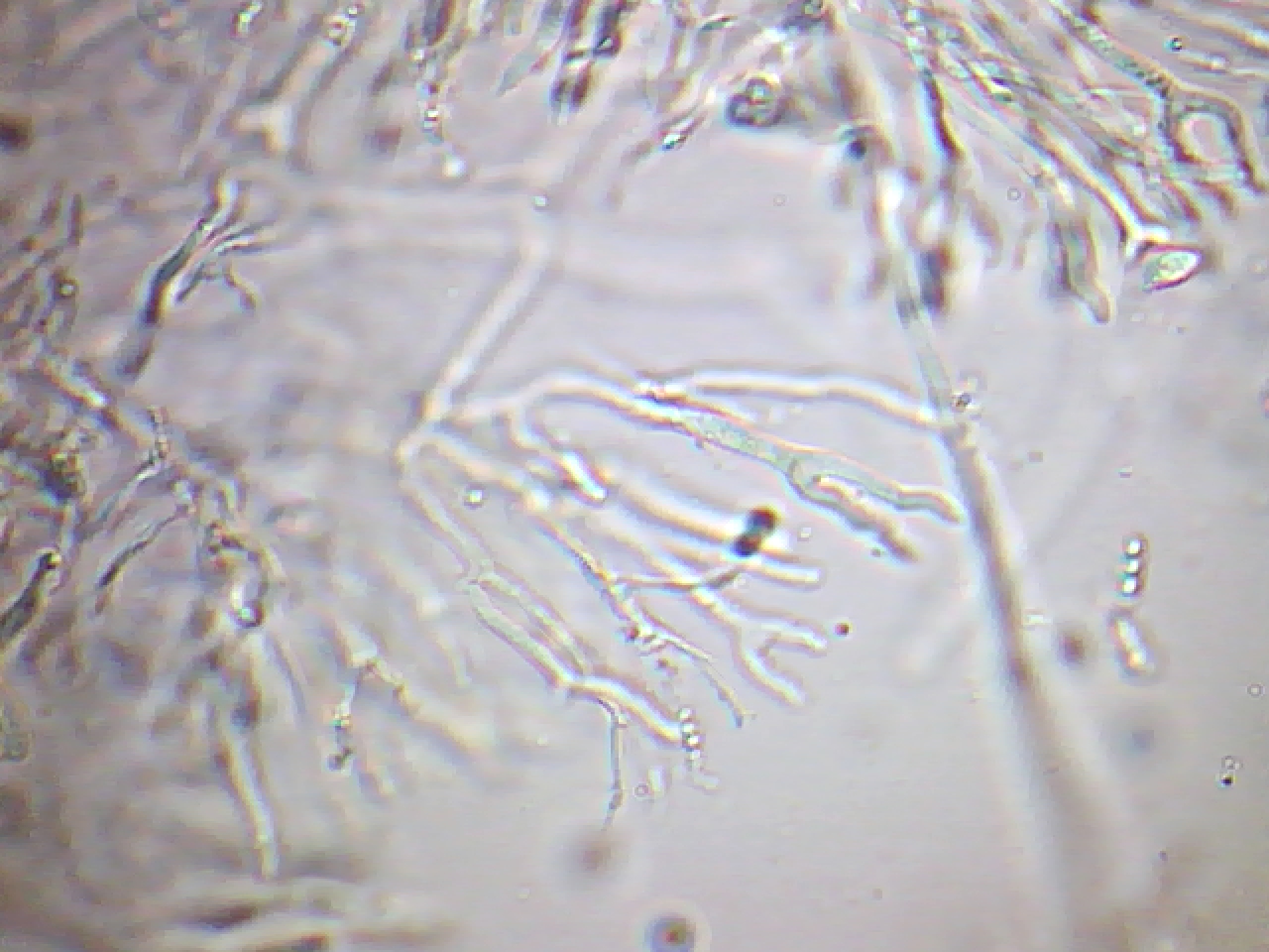 En esta imágen vemos casi de todo: hifas, paráfisis y basidios.