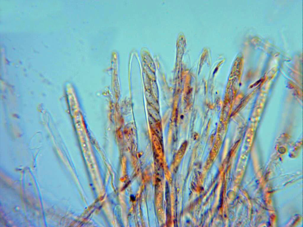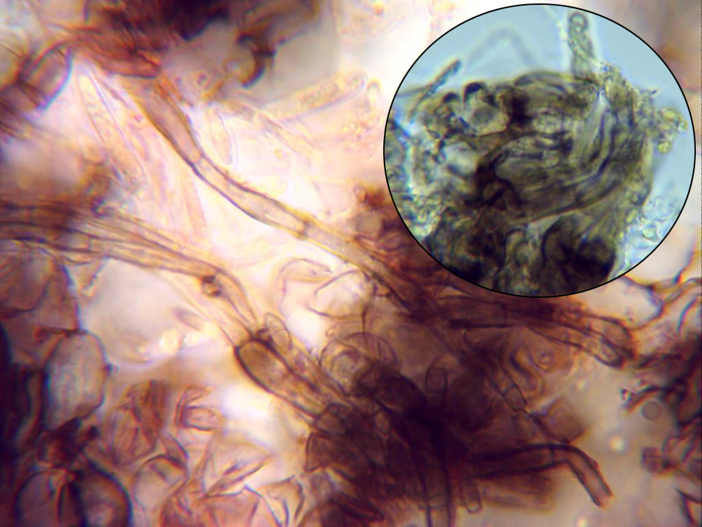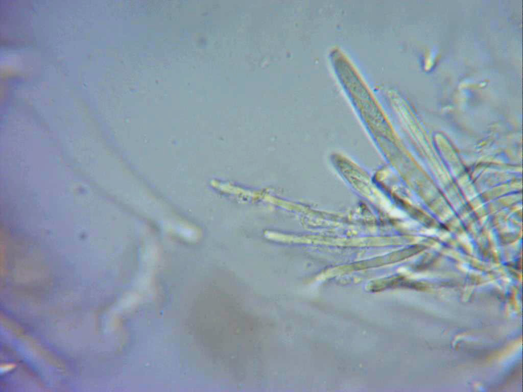 Es curioso que la Mollisia peruni, quizás por la presencia de hifas subiculares lo más correcto sería llamarla tal y como se le llamaba anteriormente "Tapesia peruni", aunque según todos los autores su nombre actual correcto es el de Mollisia peruni, de todos modos ya me he encontrado anteriormente con otras Mollisias con presencia de hifas subiculares.