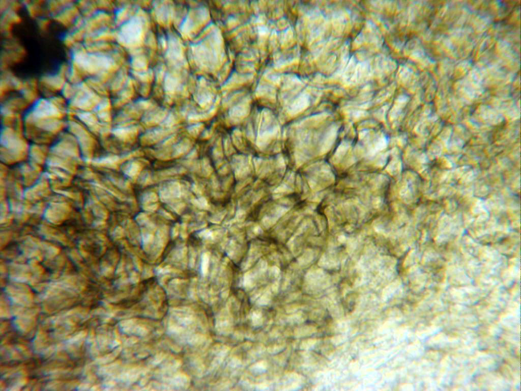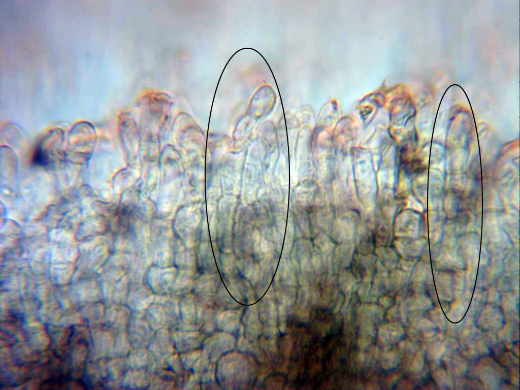 Himenio a 1000 aumentos en solución de Lugol, hialino.