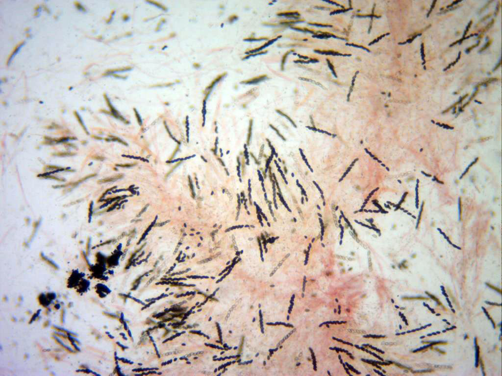 Ascas a 400 aumentos en Rojo Congo muy diluido.