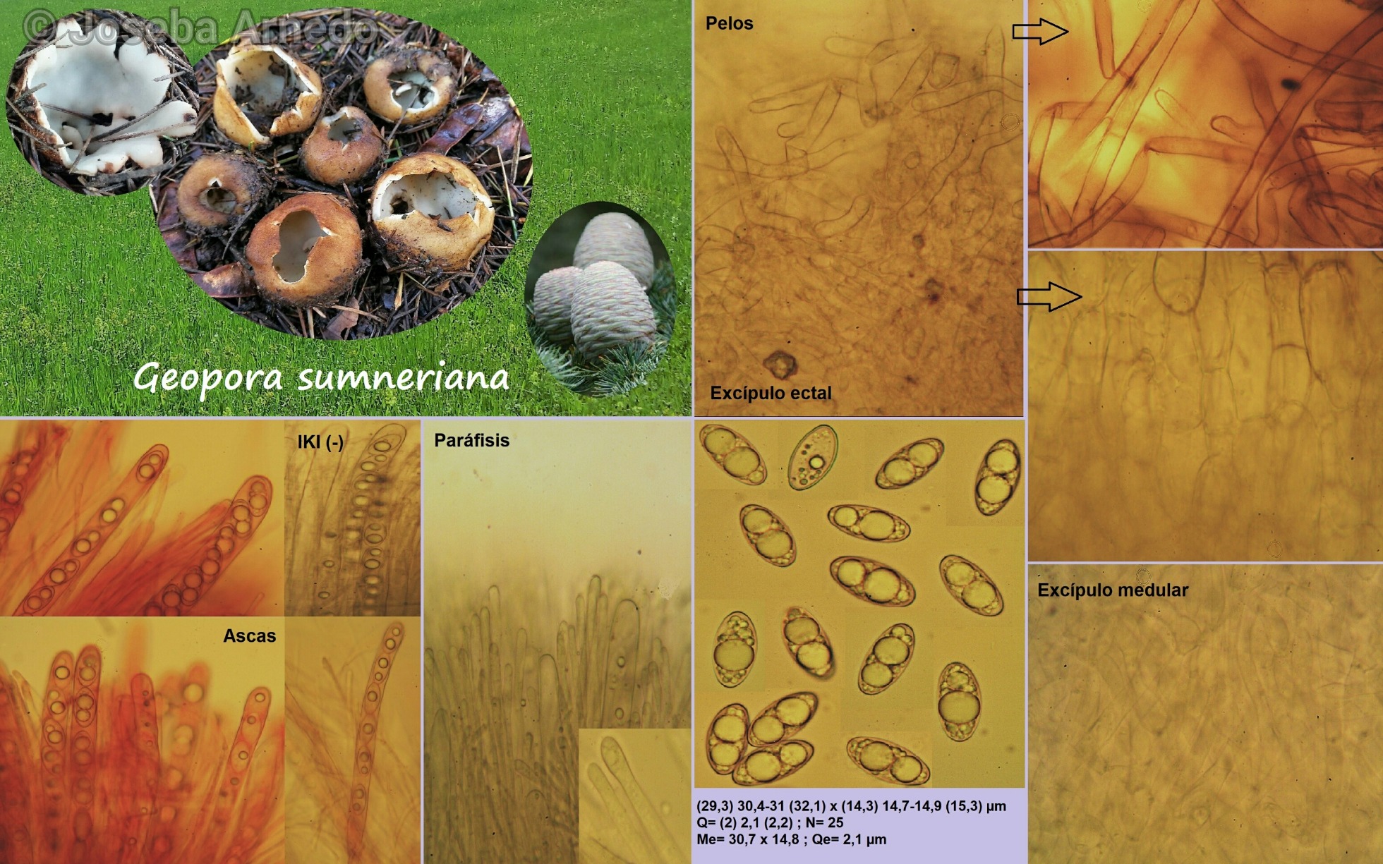 Sigo con los ascomicetos y en este caso os presento la última especie que he pasado al microscopio. Se trata de Geopora sumneriana, una especie primaveral que únicamente podemos encontrar bajo cedros, en este caso crecían bajo Cedrus atlantica en un parque cercano a mi casa.
