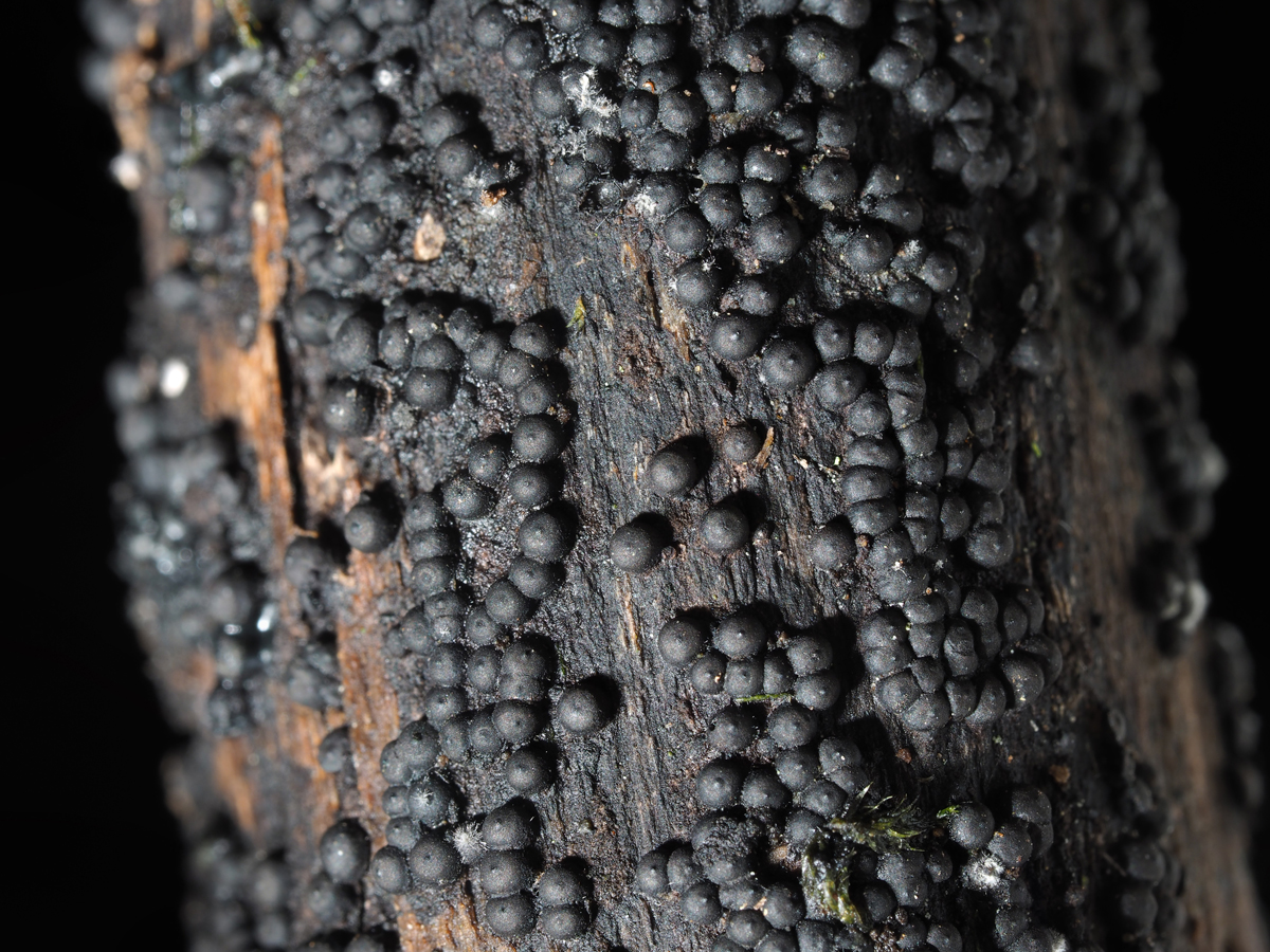 Estromas uniperiteciados, dispersos, rara vez fusionados de hasta 1,2 mm. Color marrón oscuro o negro, ostiolos papilados, cónicos y subículo presente.