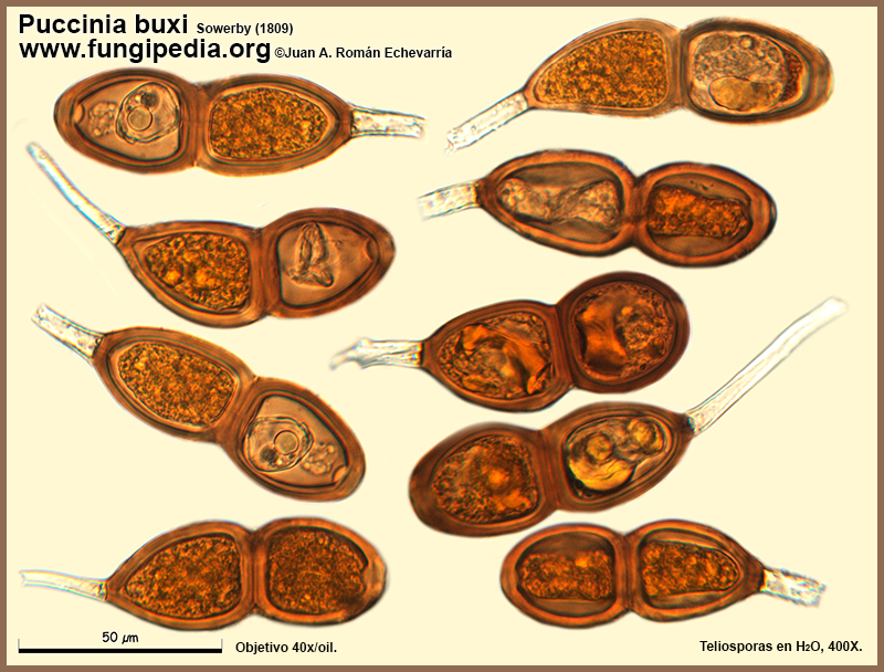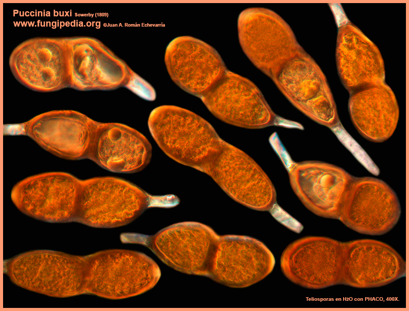 Puccinia buxi Sowerby (1809). Microscopy. Publicado por Juan Andrés Román