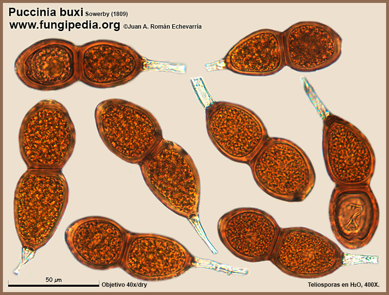 Puccinia buxi Sowerby (1809). Microscopy.