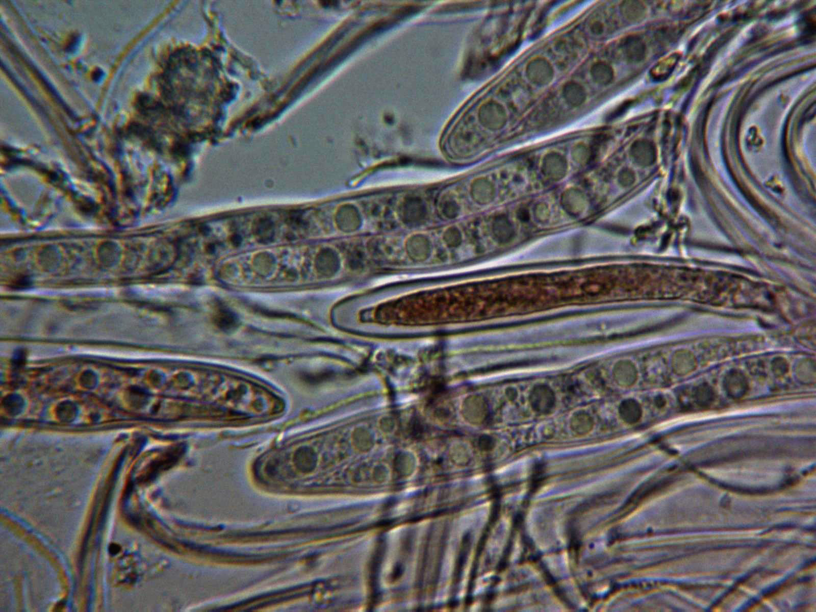 Muy pocas esporas observadas libres en las muestras, mayoritariamente dentro de las ascas.