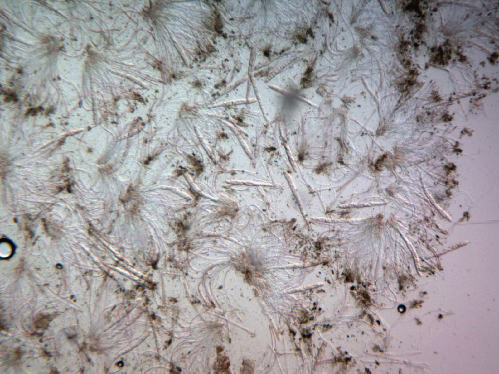 Imágen a 100 aumentos, donde ya se aprecia claramente las ascas y sus muy abundantes paráfisis.