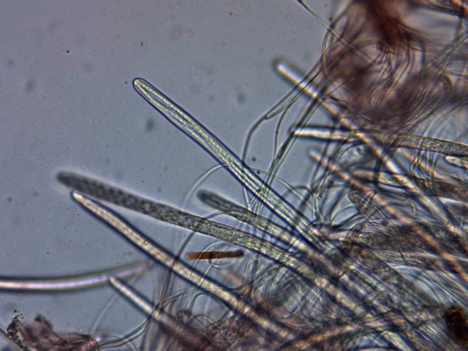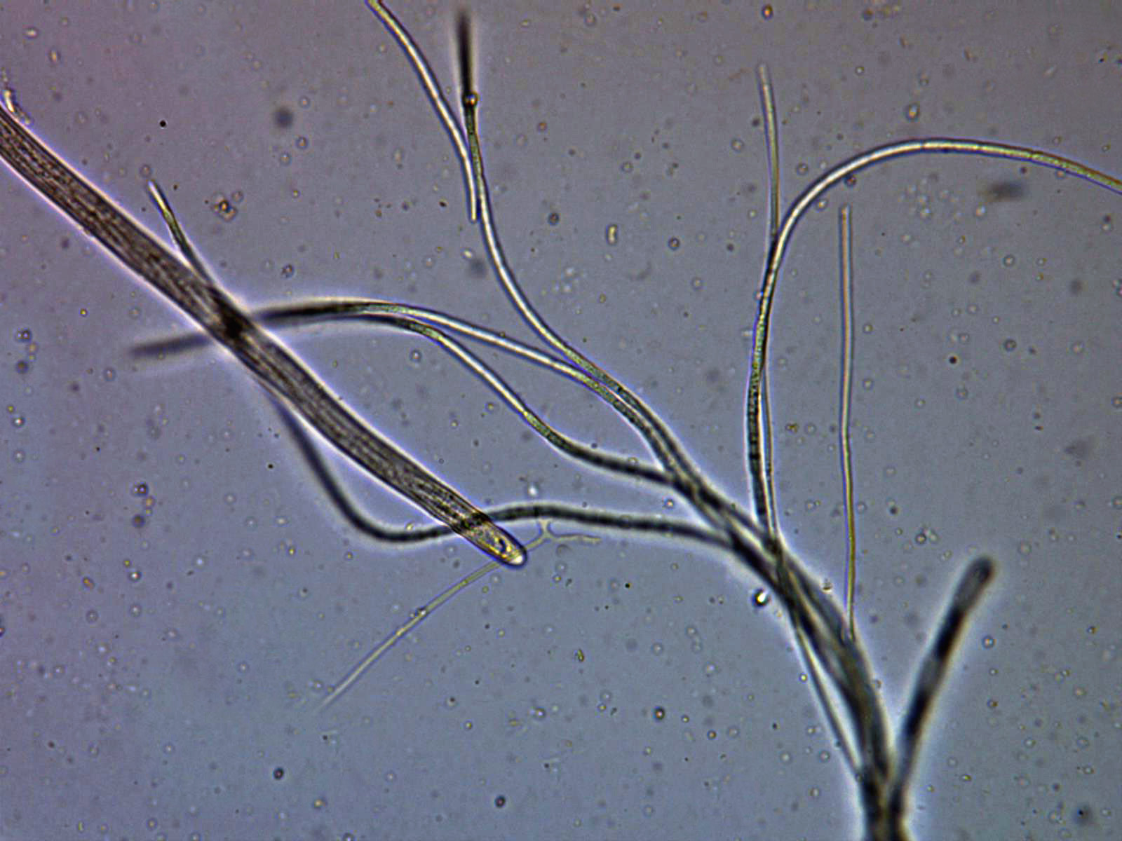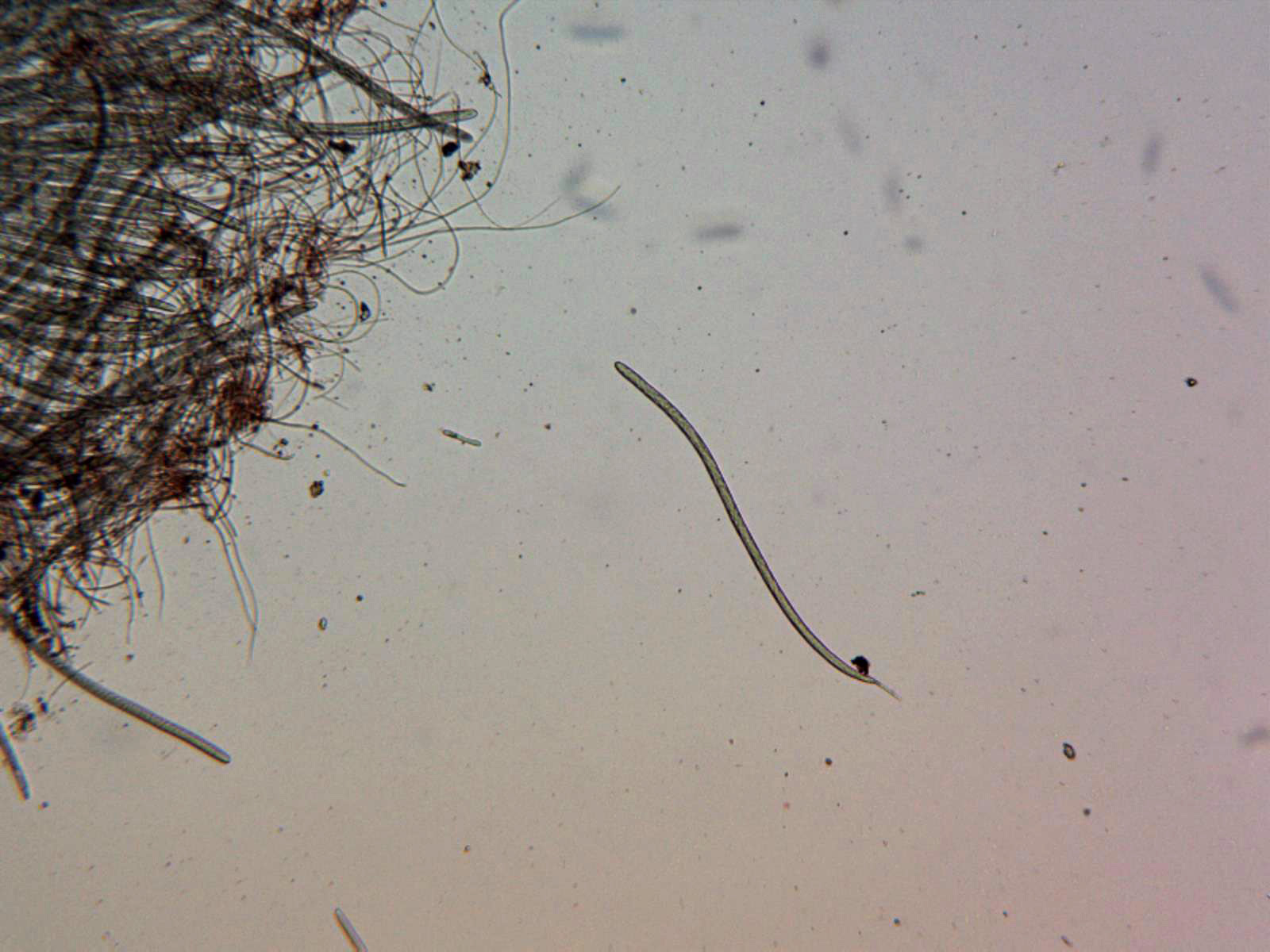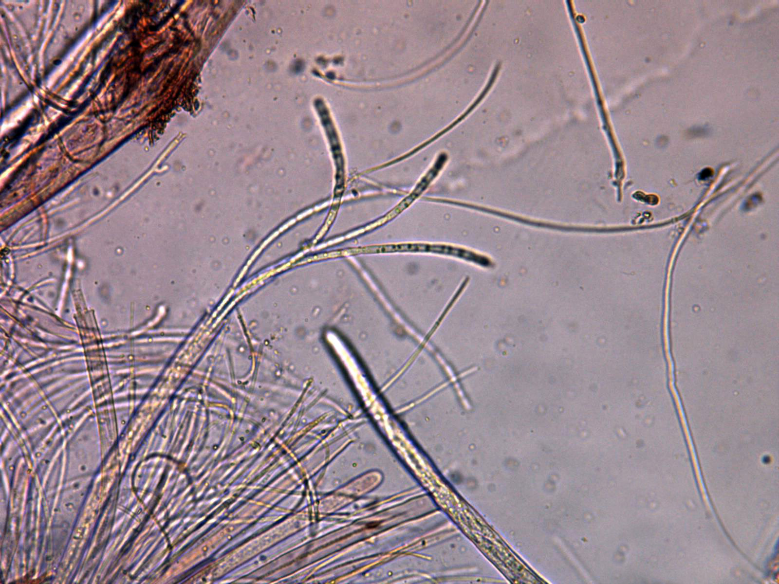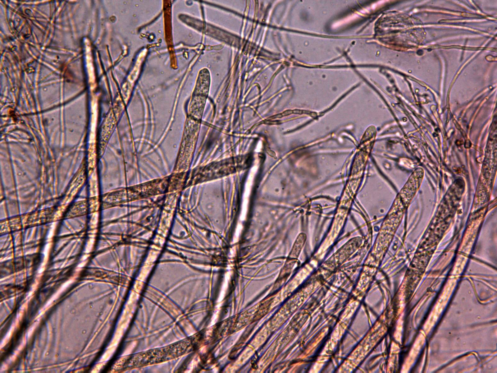Gracias Juan Andrés, este me lo proporcionó Ricardo, en el primer sitio donde empezamos la recogida de muestras, poco después o prácticamente simultáneo con la Typhula, Ricardo la identificó como posible Stictis radiata o Stictis stellata, mi trabajo solo consistiría en averiguar de cuál de las dos se trataba. Solo al empezar con la microscopía y a tan solo 100 aumentos ya me di cuenta que por el tamaño de las ascas no se trataba de ninguna de las dos, aunque sí que se tenía que tratar de un género emparentado con Stictis ya que el aspecto y comportamiento al micro era el mismo. Esta es otra de las sorpresas del día aunque me temo que no la última, Ricardo nos tiene que presentar una que se la he dejado para él, aunque ya dispongo asimismo de toda su microscopía, la que encontramos al final de la mañana sobre "Rubia peregrina".