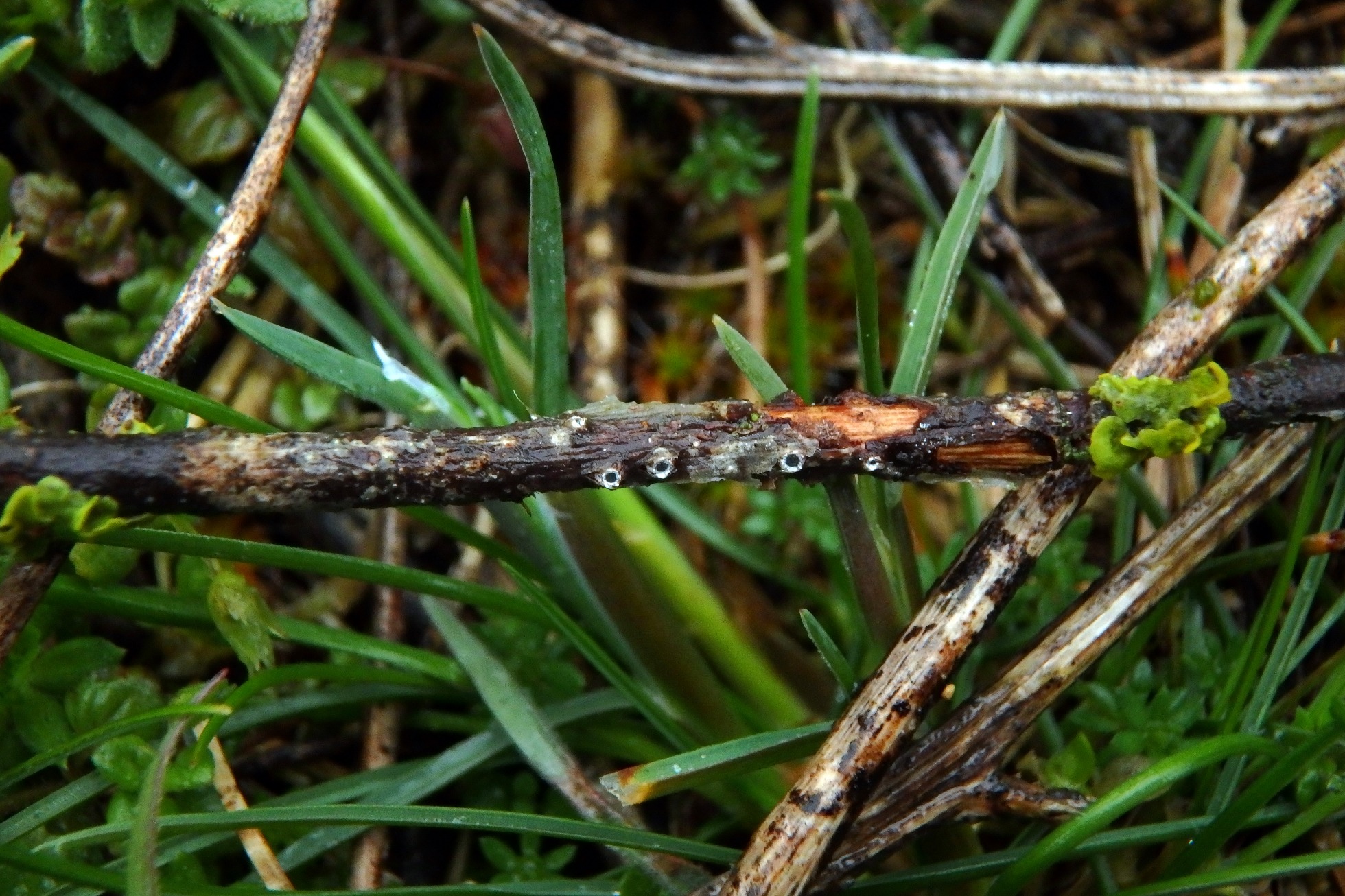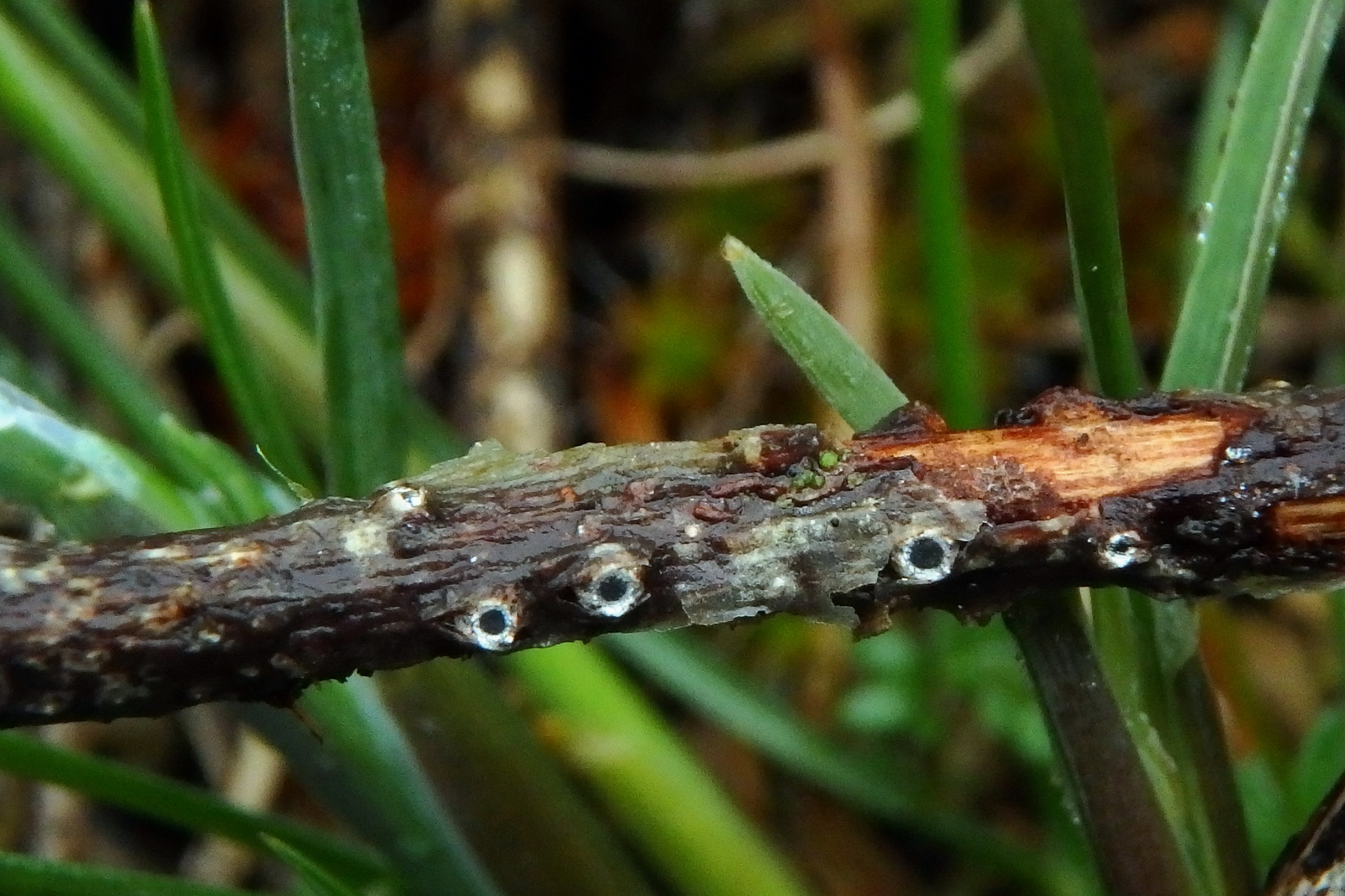 Diminutos hongos que rompen la corteza a modo de ojos, de muy pequeño tamaño.