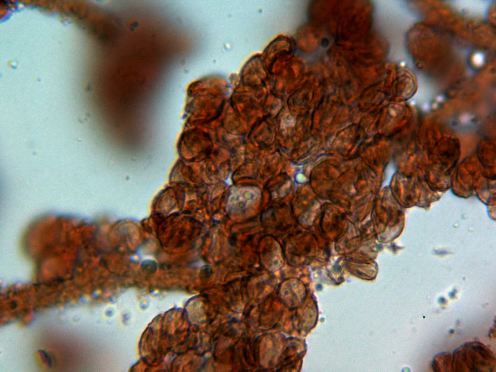 Esporada en masa de color marrón rojizo.
