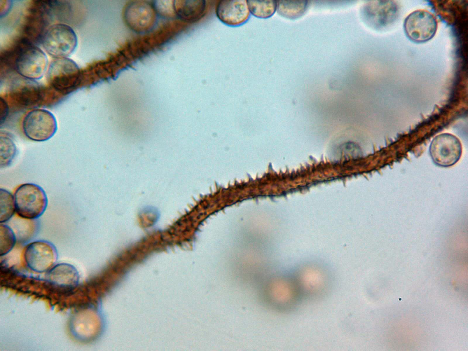 Capilicio sin crestas ni medios anillos, con una anchura de 3 a 5 micras y con espinas muy puntiagudas y abundantes.