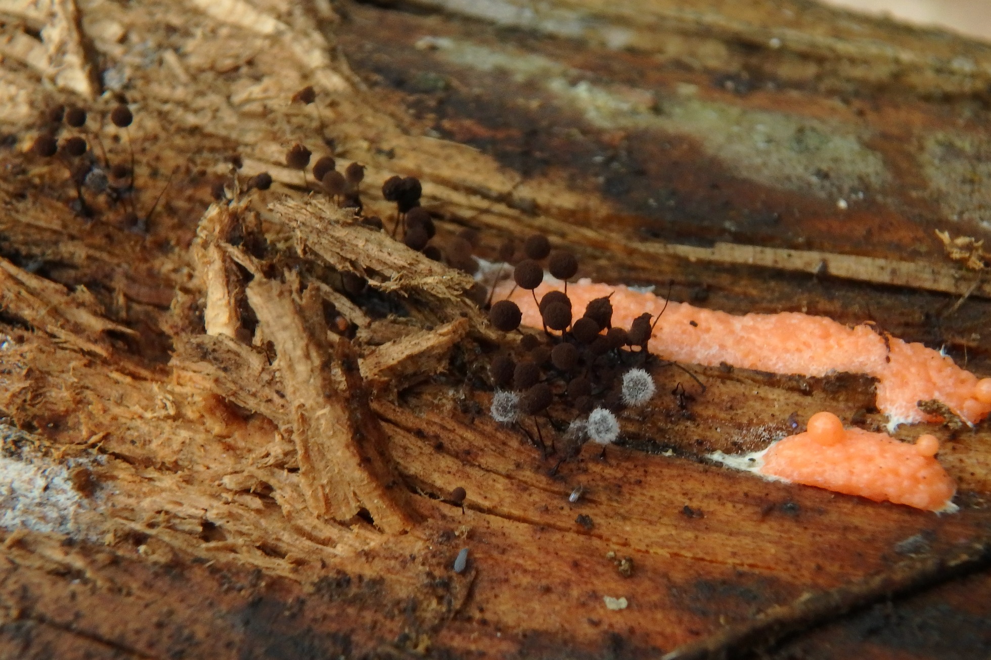 Gracias Juan Andrés, el Dictydiaethalium al estar tan próximo en un primer momento pensé en que quizás se tratara de la fase plasmodial, esto no me encajaba ya que el Plasmodium de la Comatricha nigra debería ser blanco, al final han resultado dos especies distintas, al Dictydiaethalium le tenía verdaderas ganas.