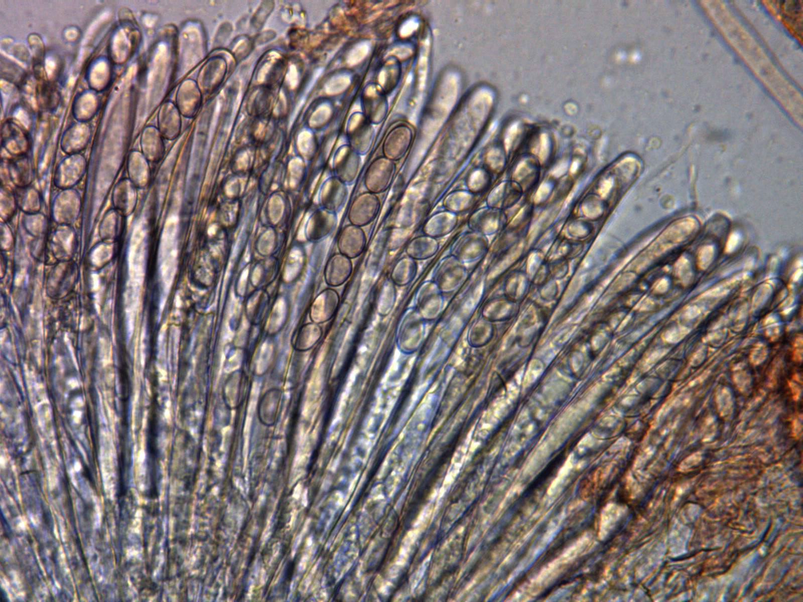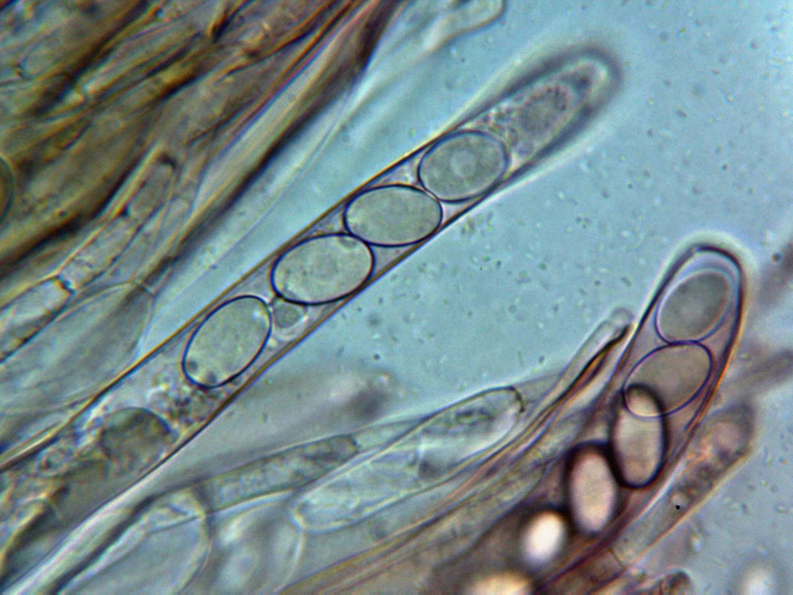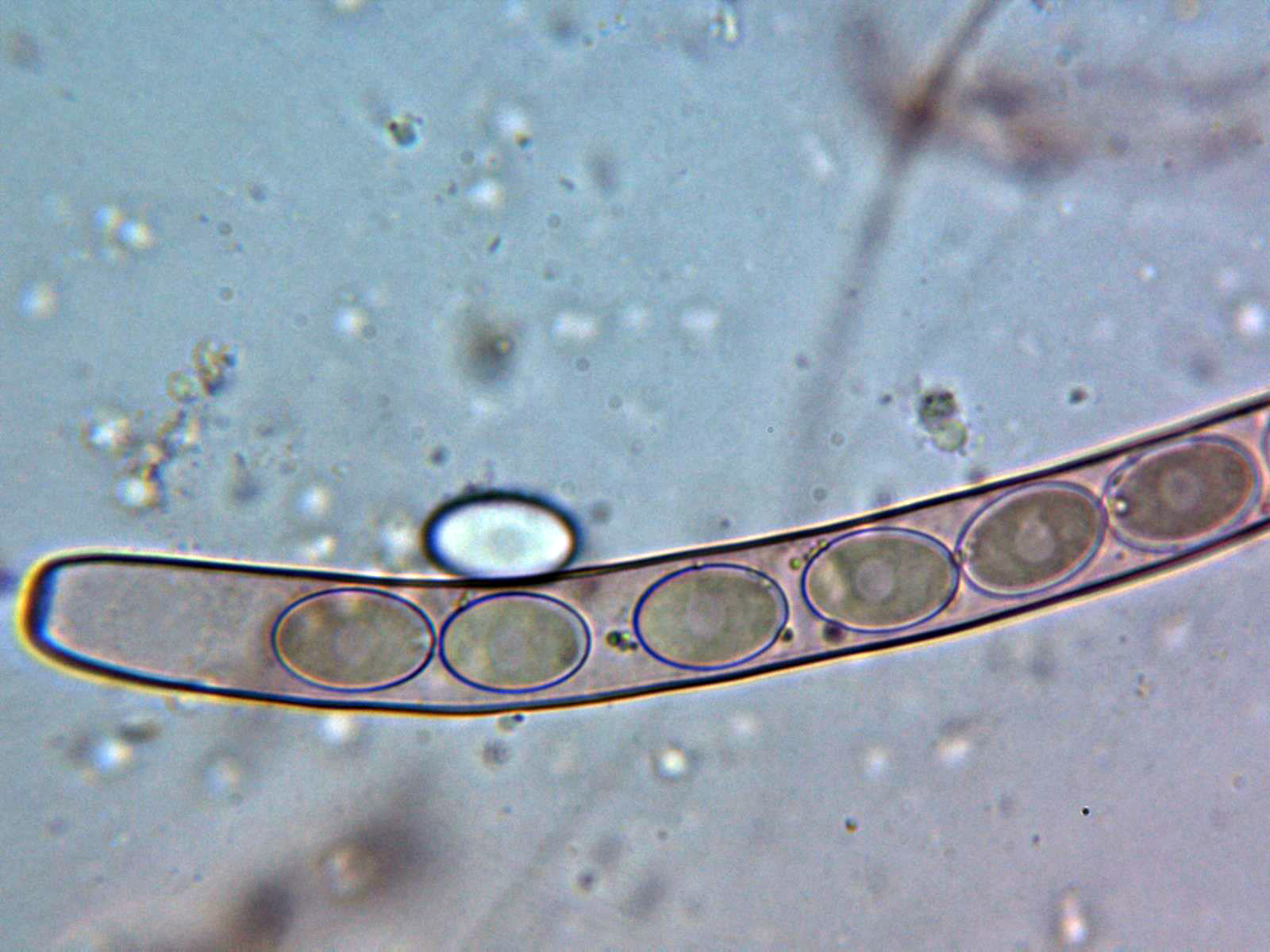 Ascas a 1000 aumentos, octospóricas y uniseriadas.
