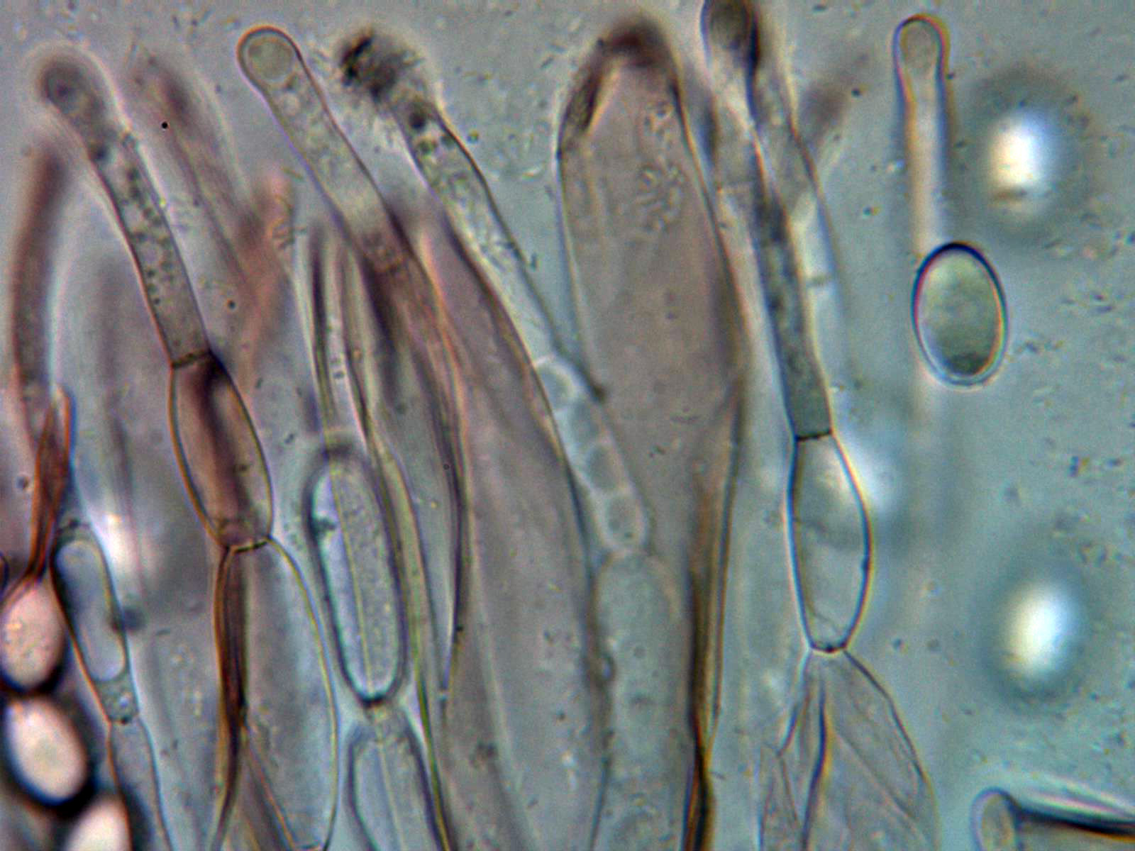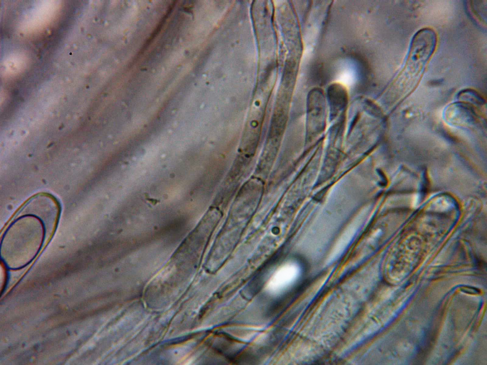 Paráfisis septadas, con hifas cilíndricas que se van ensanchando al acercarse a la base, y con el extremo de las mismas ligeramente capitado.
