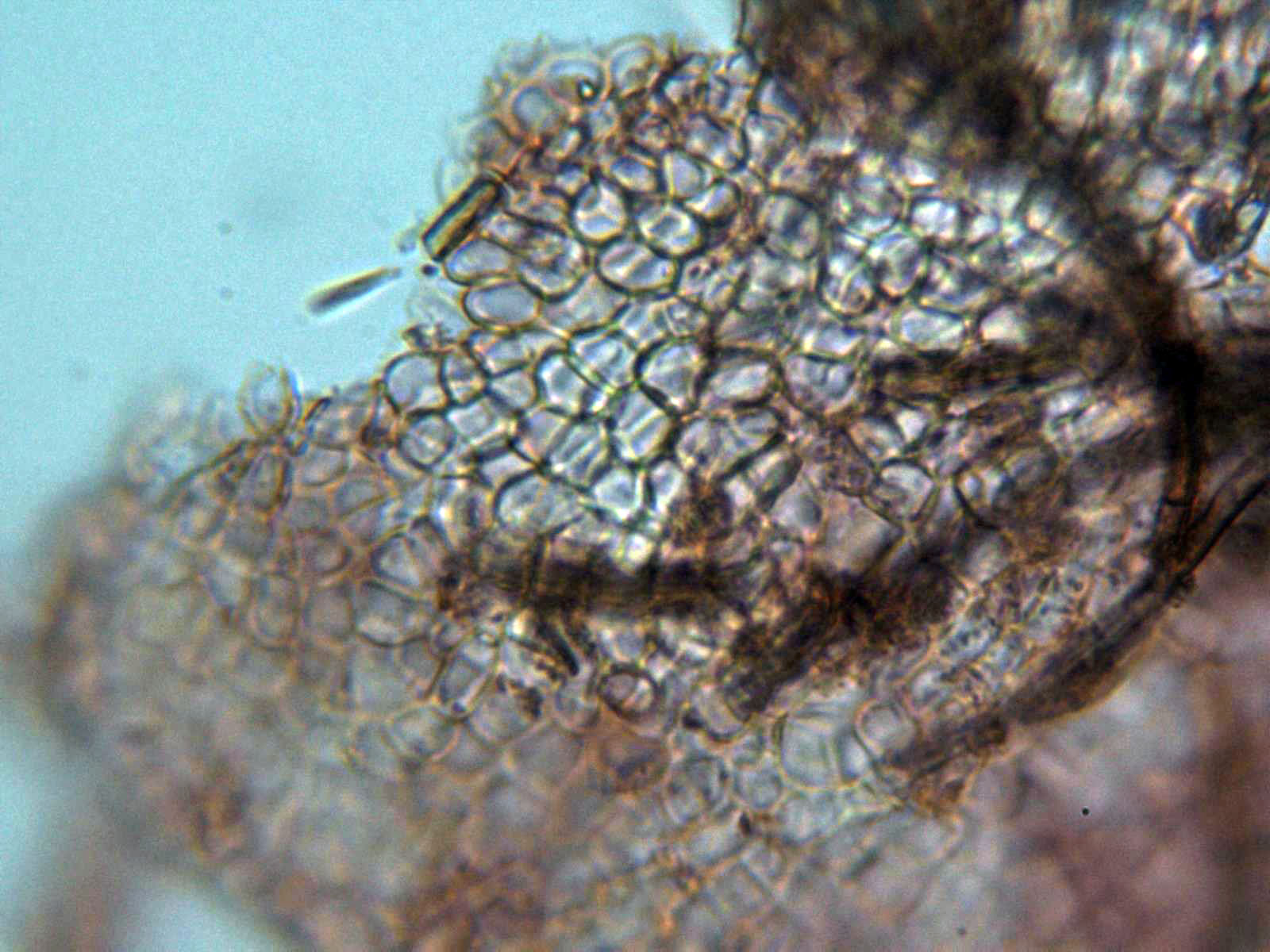 Base de los pelos marginales, con hifas entre globosas y angulares.