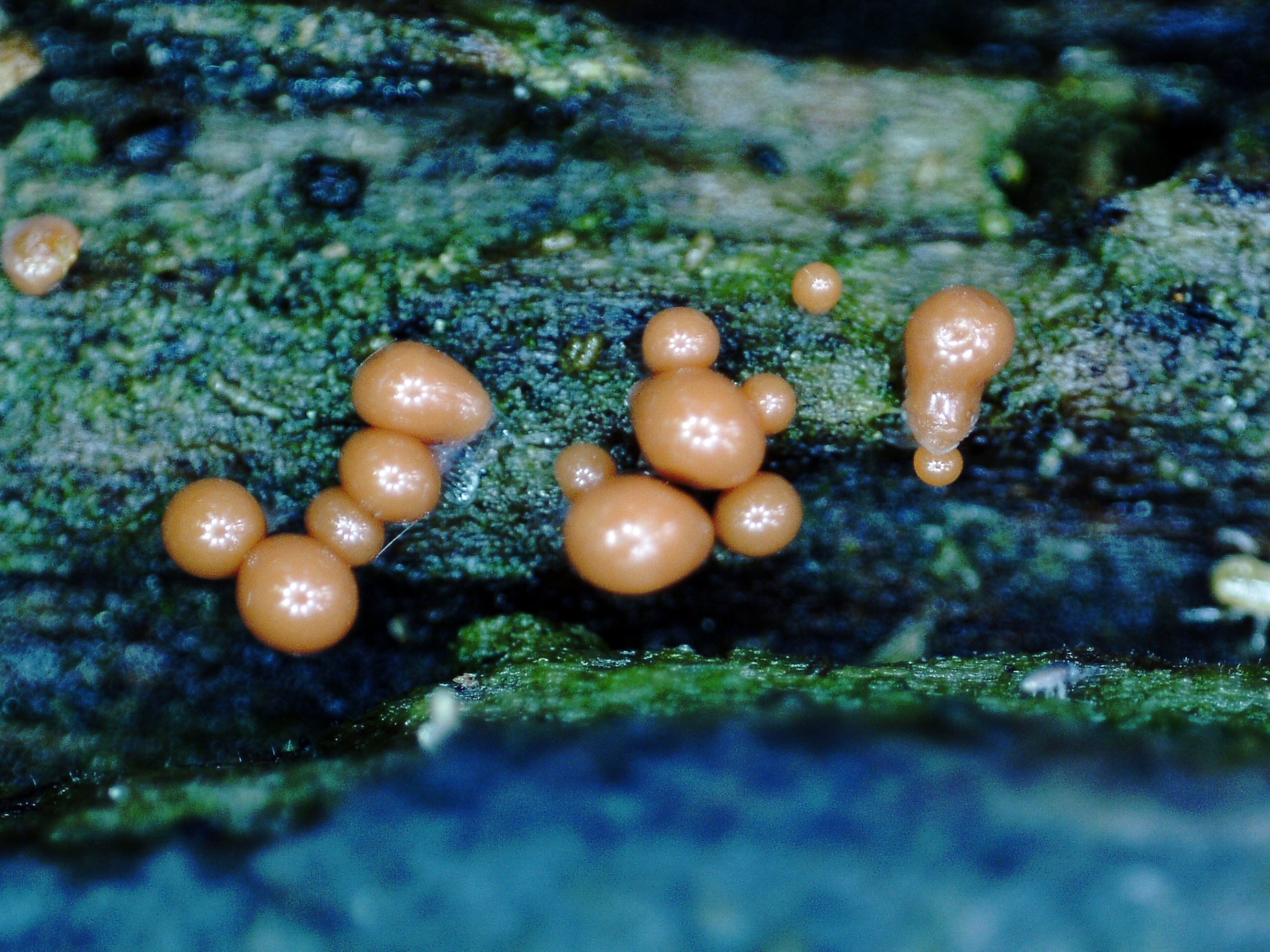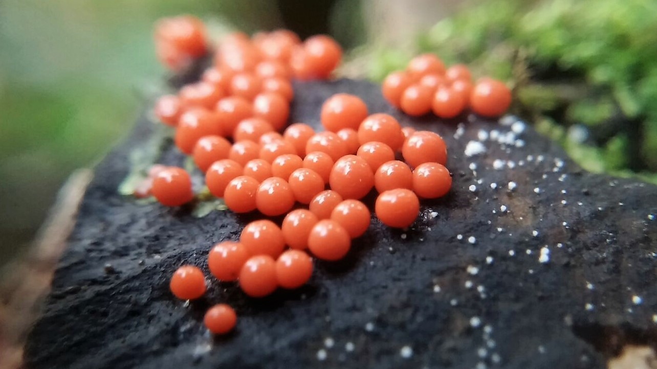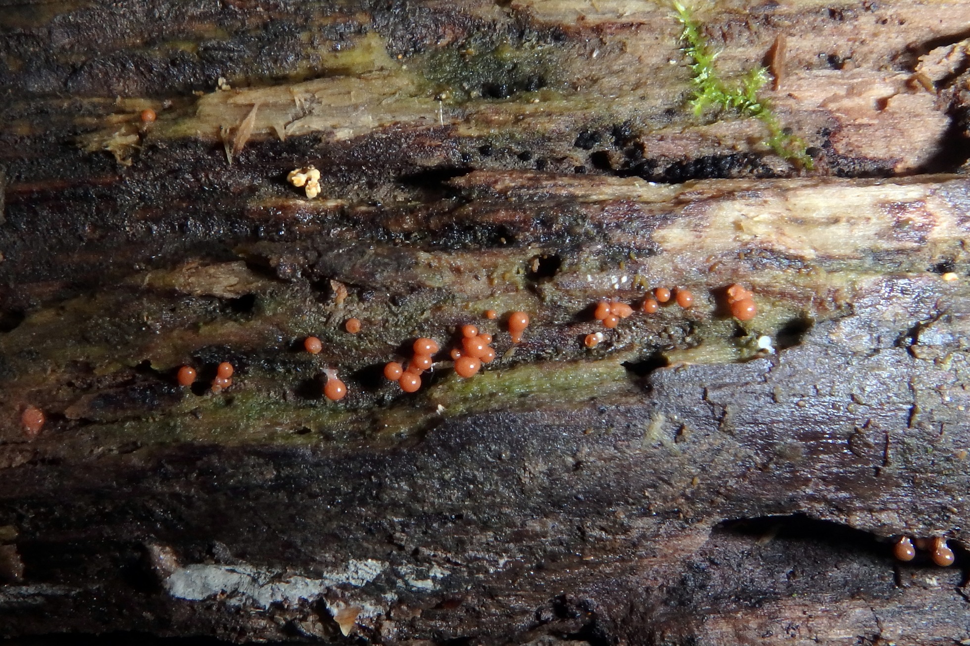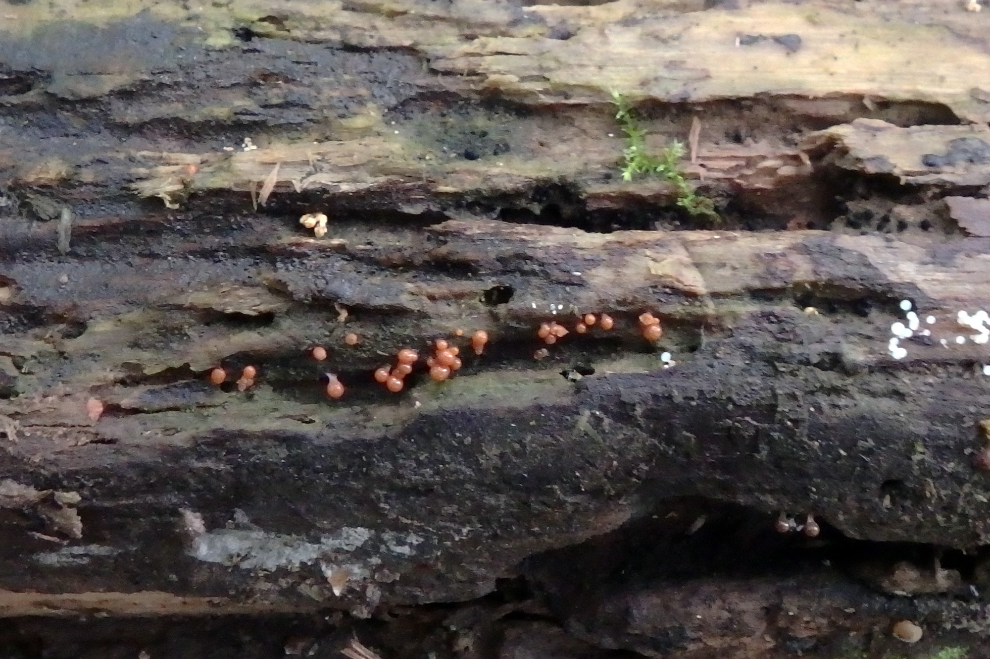 Imágenes de un Mixomiceto de este pasado domingo, sobre un tronco indeterminado en un cauce fluvial donde predominaban los robles.