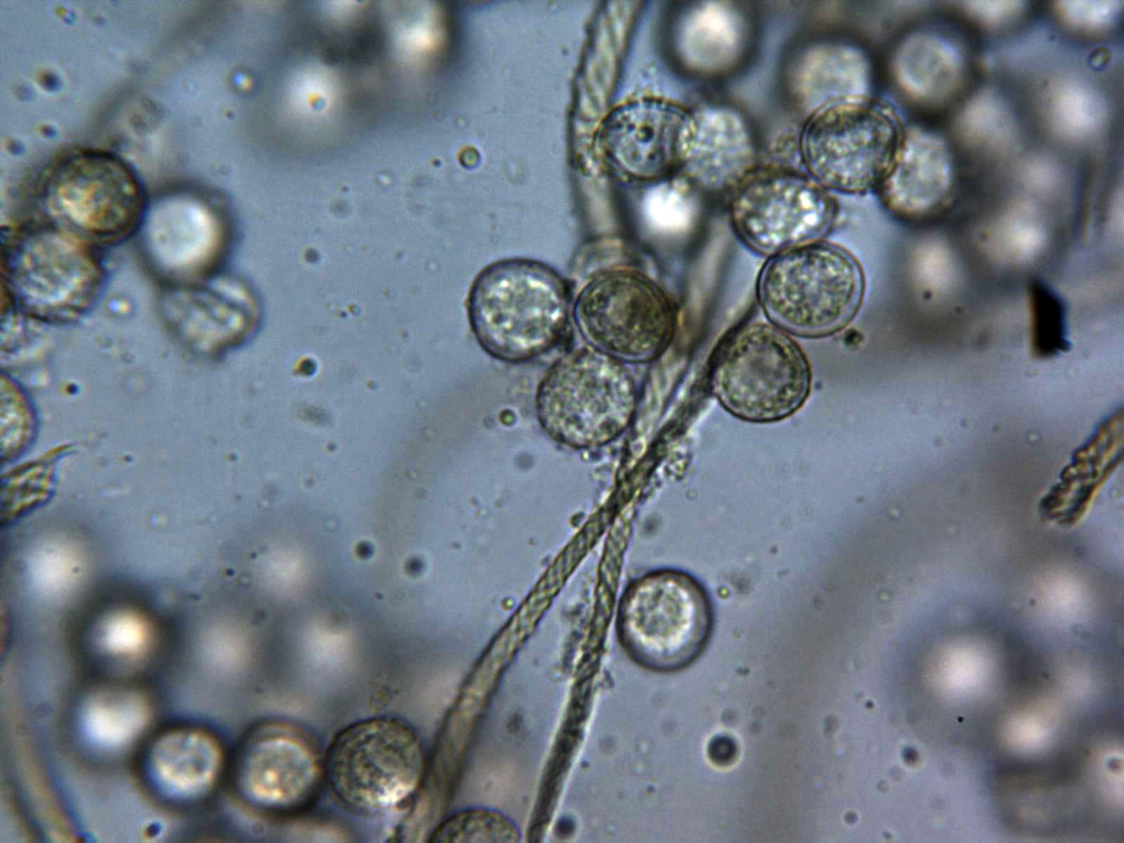 Este es ya el color que presentaban antes de pasarlos por el micro, con un pié surcado, aspecto gelatinoso y color mas blanquecino.