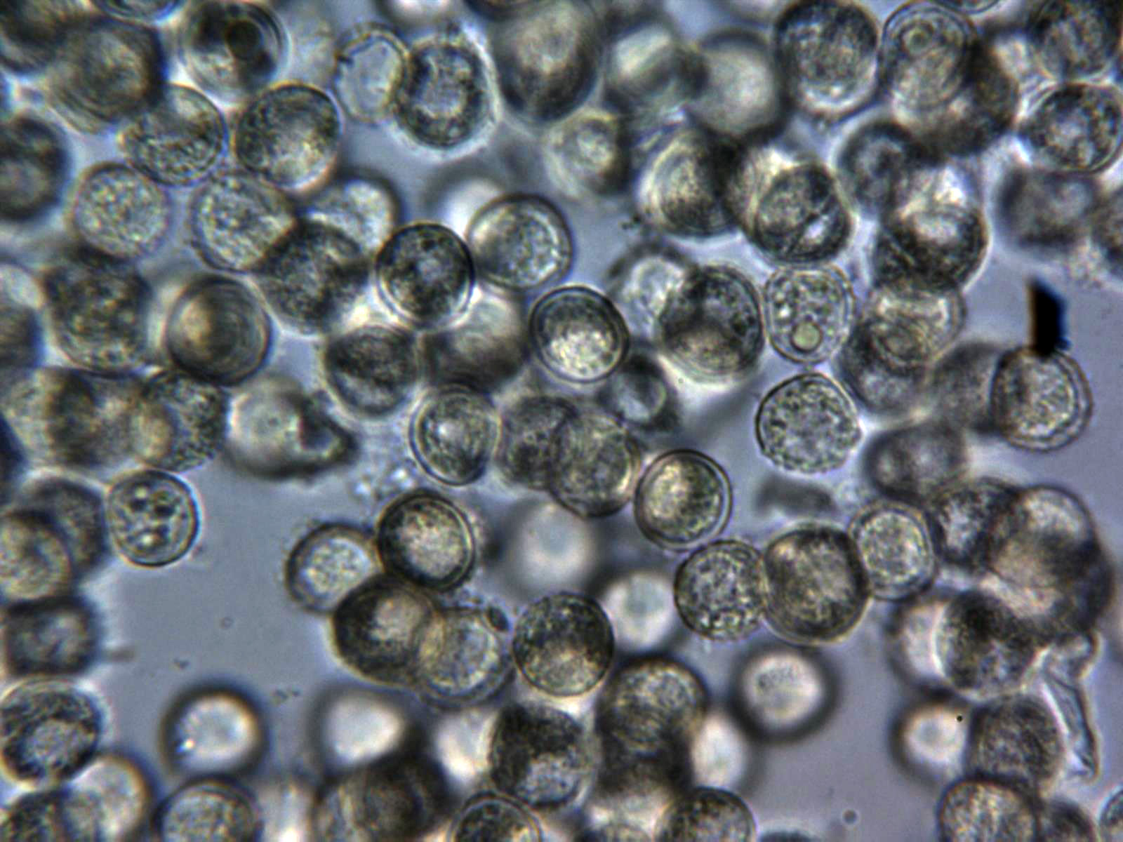 Esporas a 1000 aumentos en agua destilada.