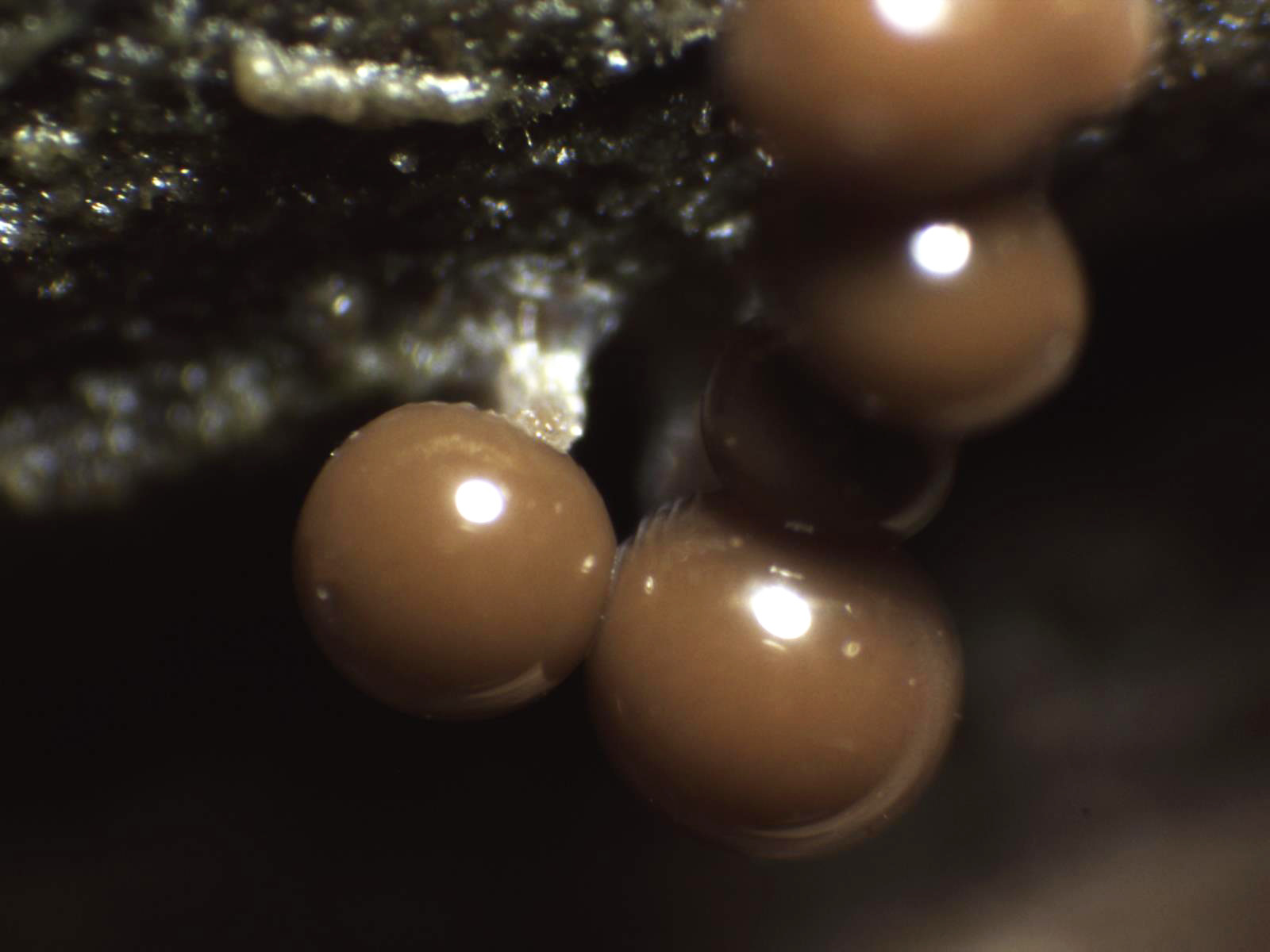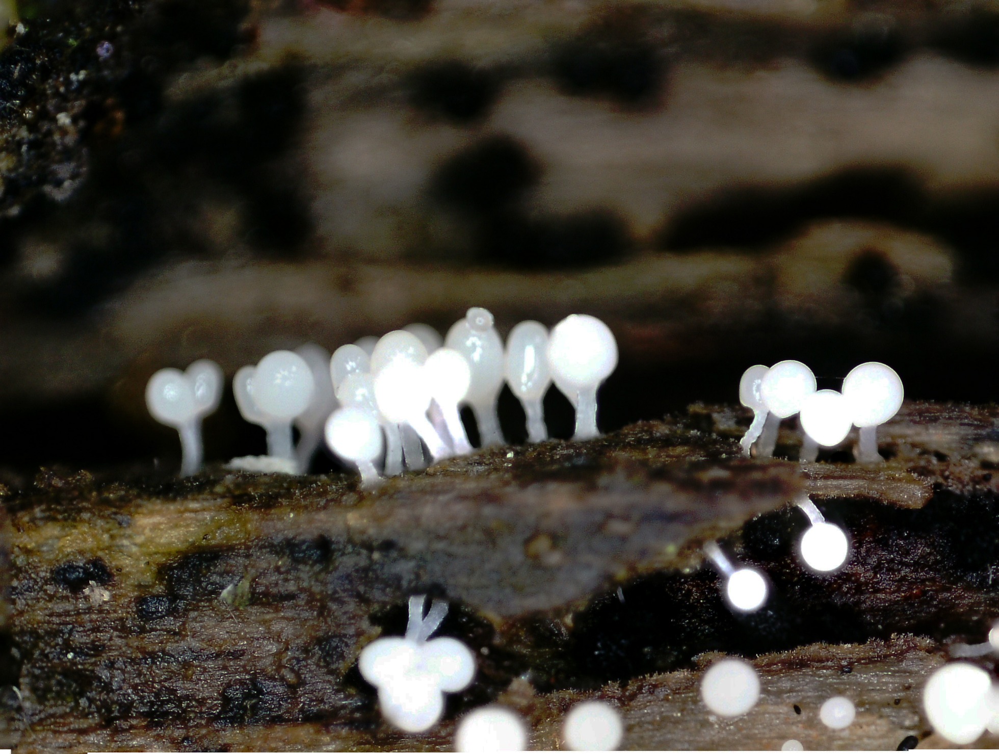 Carpóforos de muy pequeño tamaño, entre 0,6 y 0,8 mm. de diámetro, con un diminuto pié.