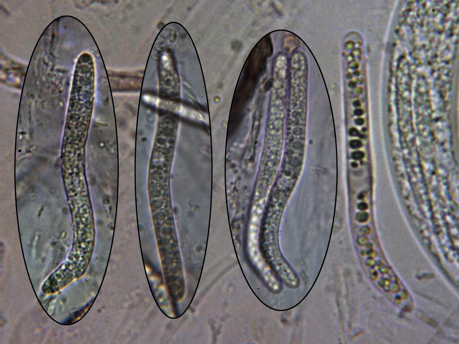 Esporas que en todos los casos están aún inmaduras y no han aparecido los septos.