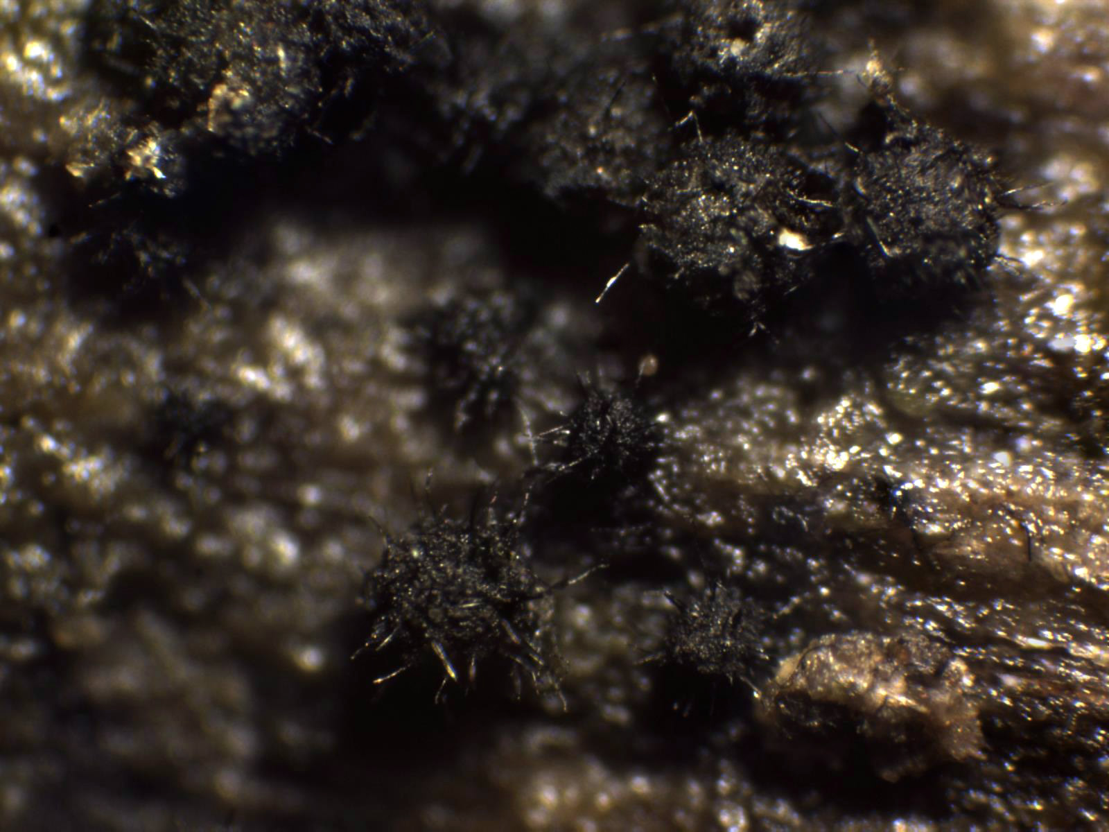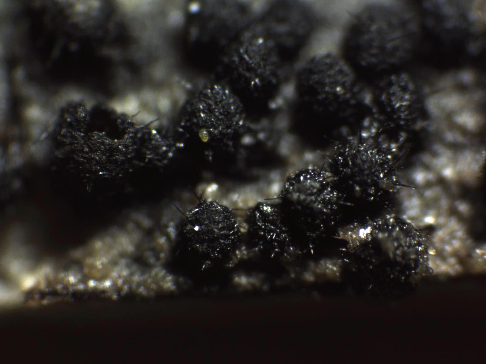 Diminutos ejemplares de color negro, con forma globosa y superficie cubierta de pelos o púas. Muy poco adheridos al sustrato.