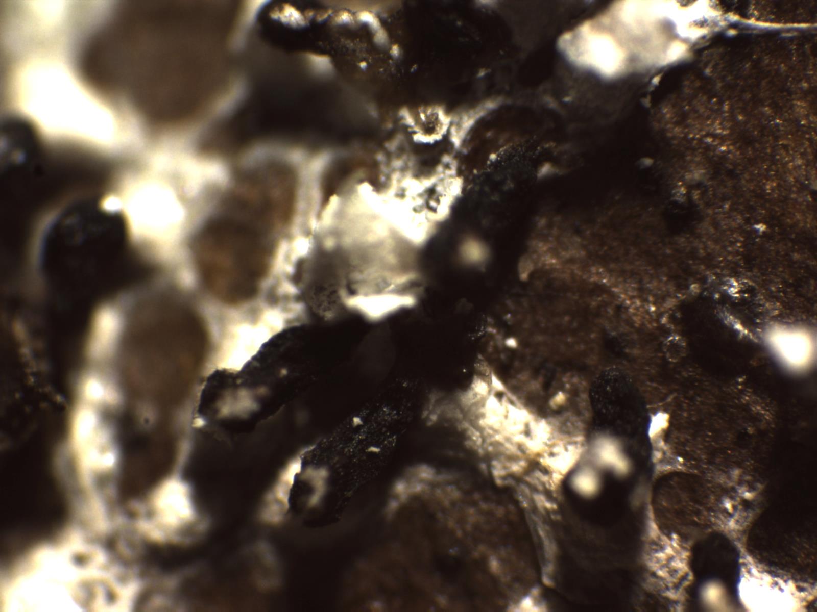 Abundantes granulos de calcio en las muestras, sobre todo en el pié del mismo.