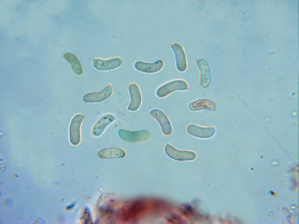 Y sus esporas, en mis mediciones de 9,4;11,5 X 3,5;4,1 micras.