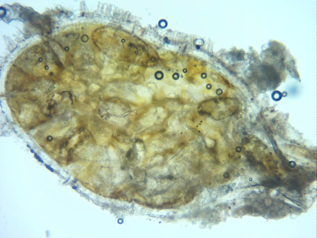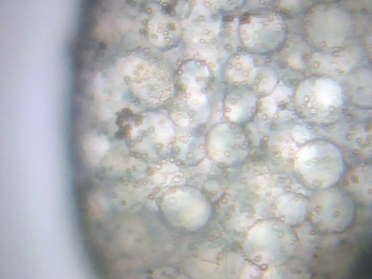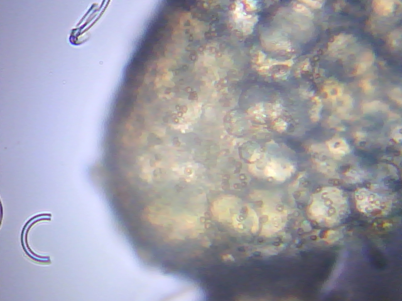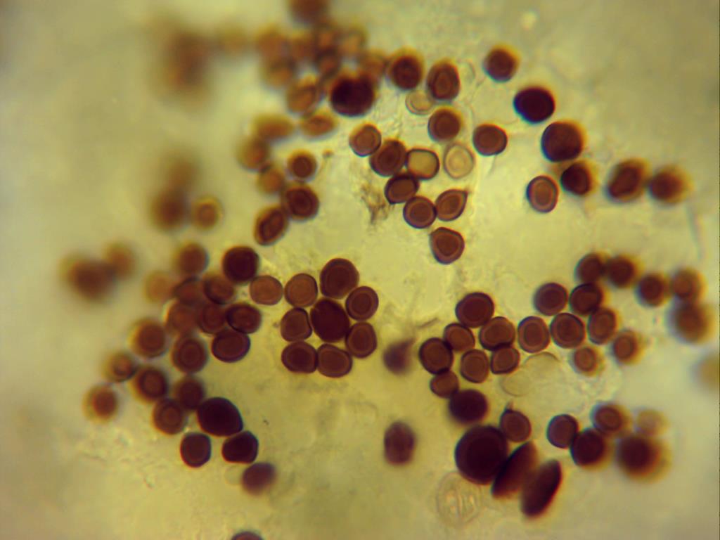 Y aquí la duda, algo que podrían ser esporas con reactivo de Melzer y a 1000 aumentos.