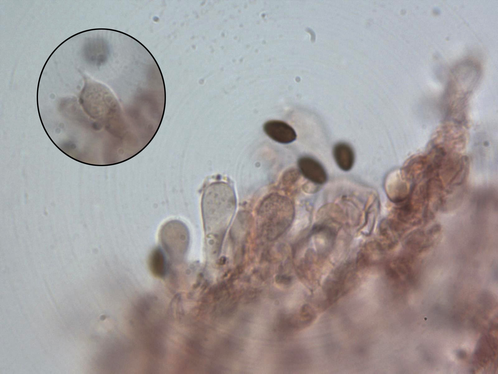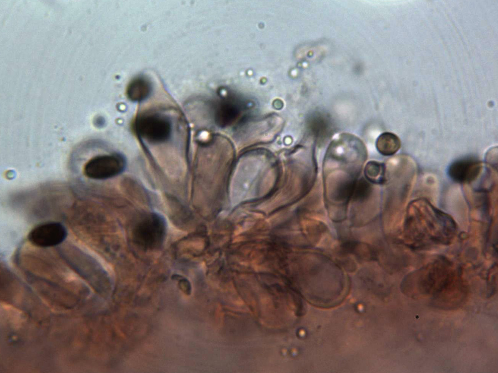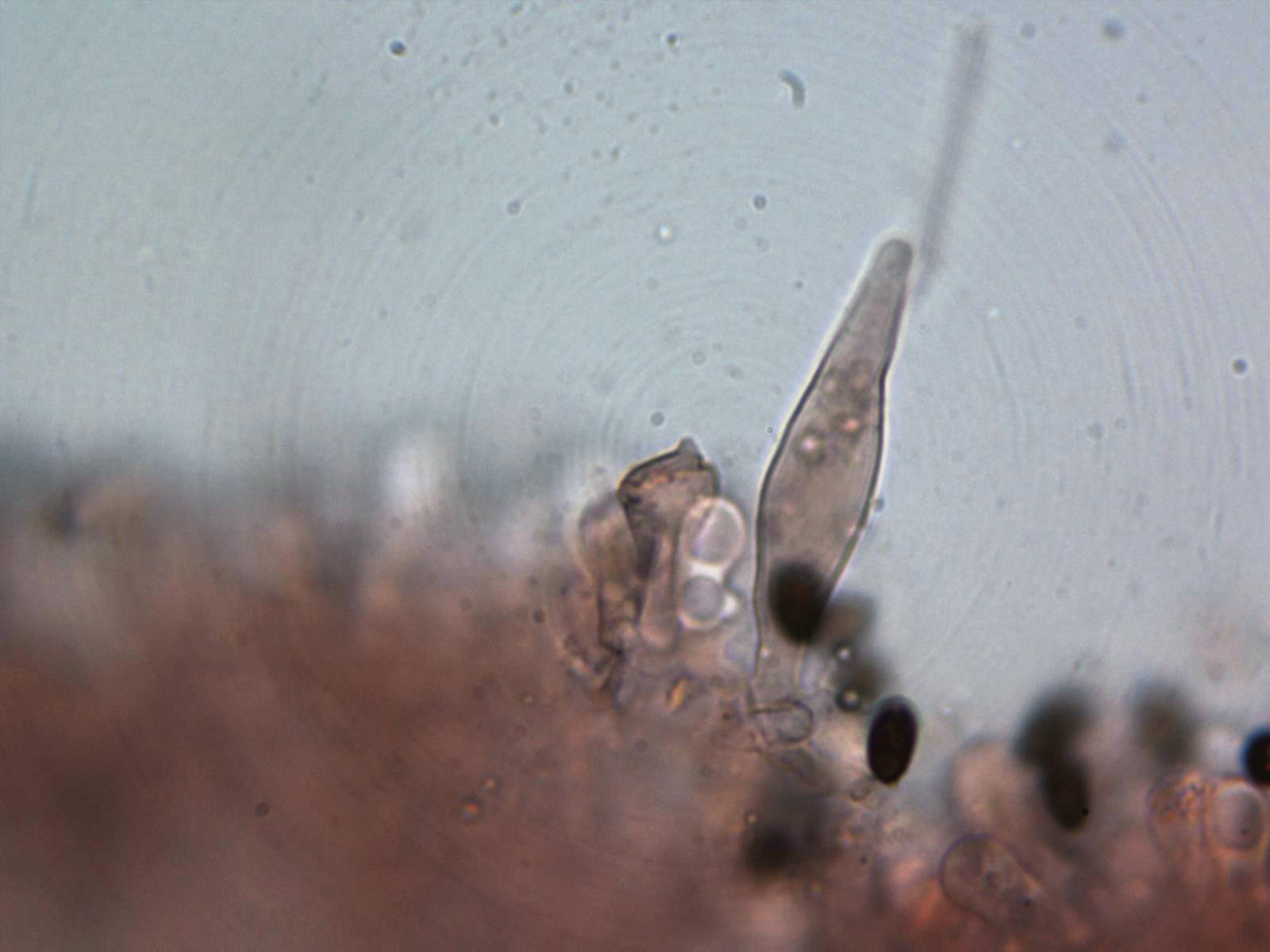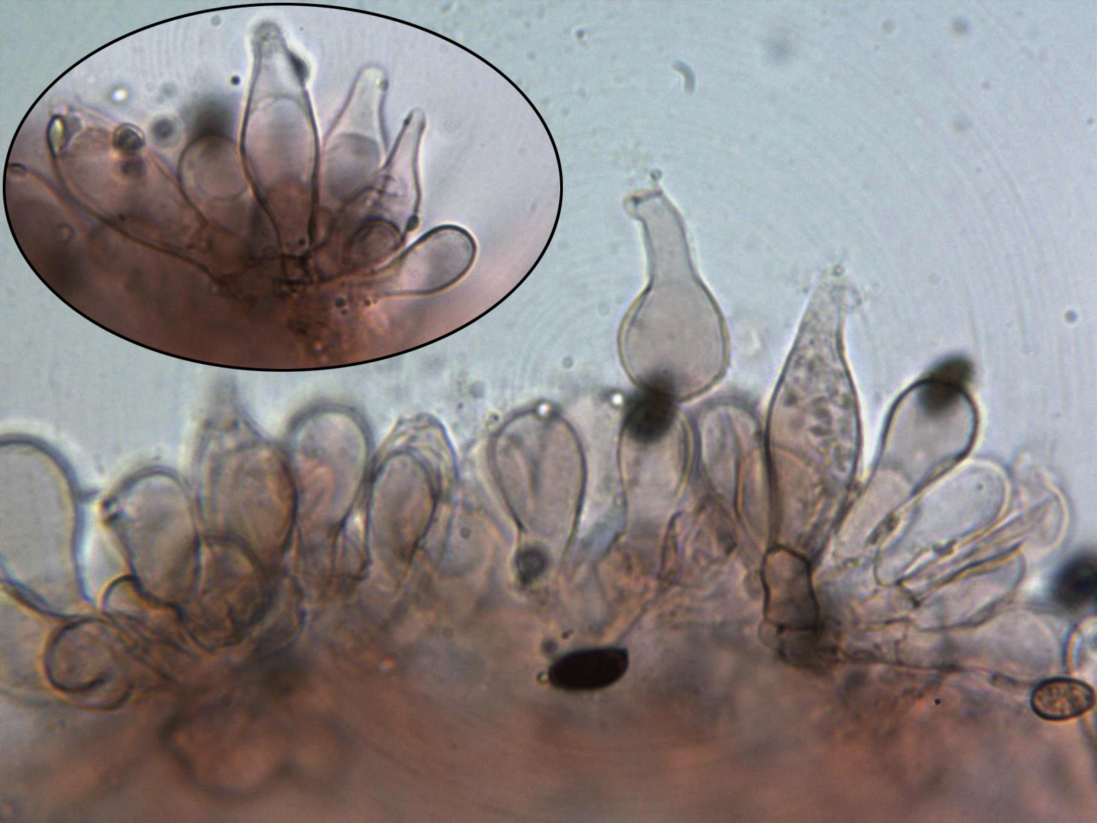 Queilocistidios de dos formas, algo bastante habitual dentro del género. Queilocistidios entre piriformes y lanceolados.