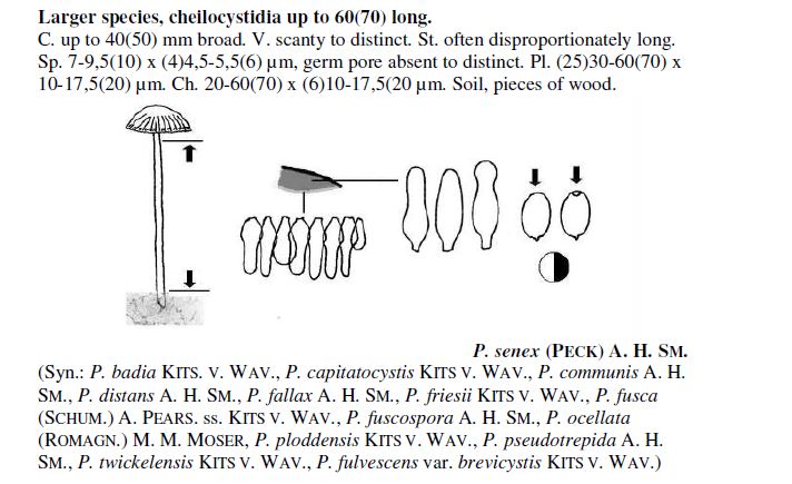 Es muy conveniente al hacer la micro sobre todo de esta especie o una de su grupo observar el grosor de sus paredes cistidiales en agua/amoniaco y la posesión o no de depresión s.h. en sus esporas, características que la diferencian sobre todo de P.friesii, (especies para mí independientes).