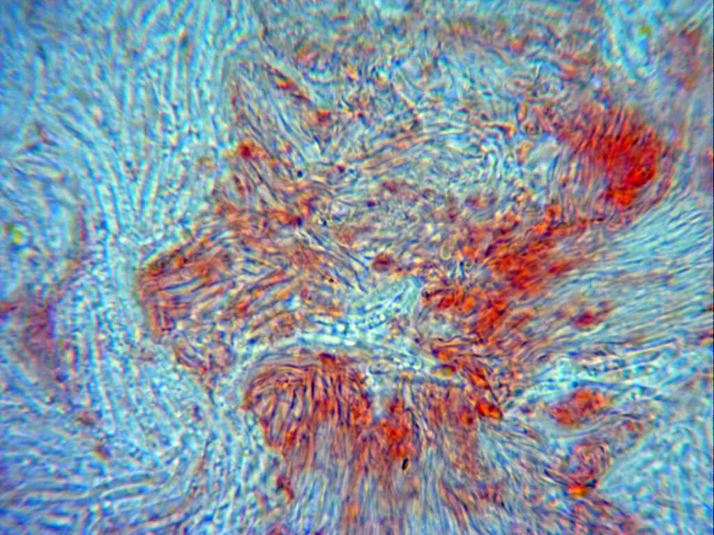 Contexto de hifas conidiógenas en solución de Rojo Congo SDS a 1000 aumentos.
