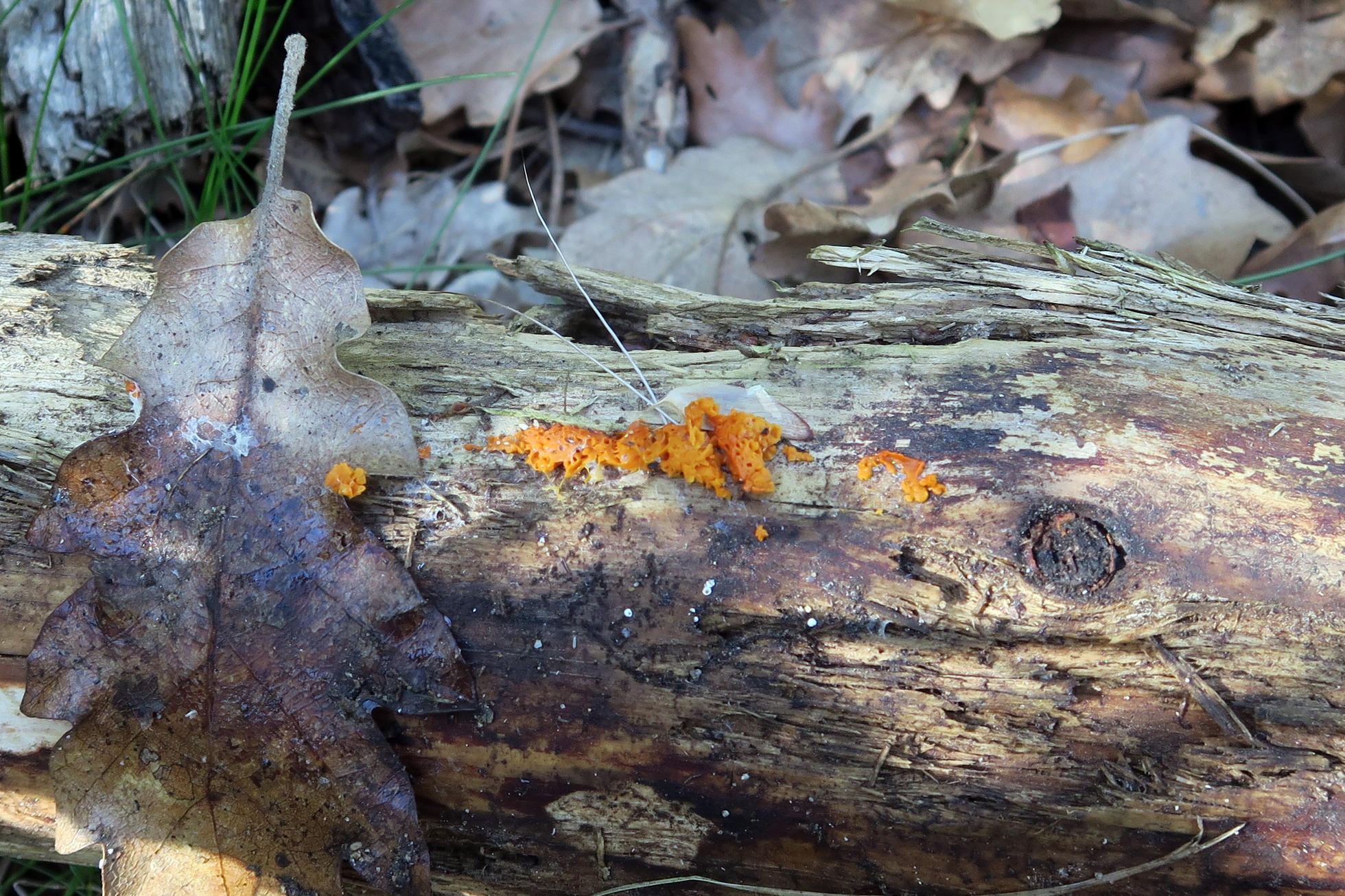 Empieza con un Mixomiceto en fase plasmodial fotografiado sobre un pequeño tronco degradado en un bosque de robles el 17 de Abril del pasado año 2017.